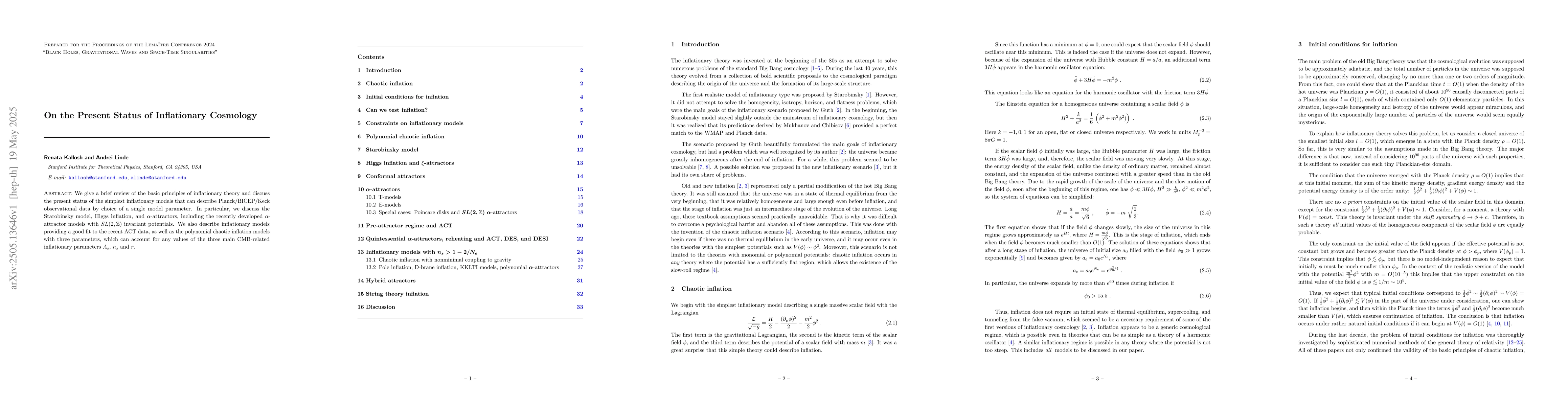 The paper offers a comprehensive review of inflationary cosmology models, emphasizing their alignment with recent observational data from Planck, BICEP, Keck, and ACT.