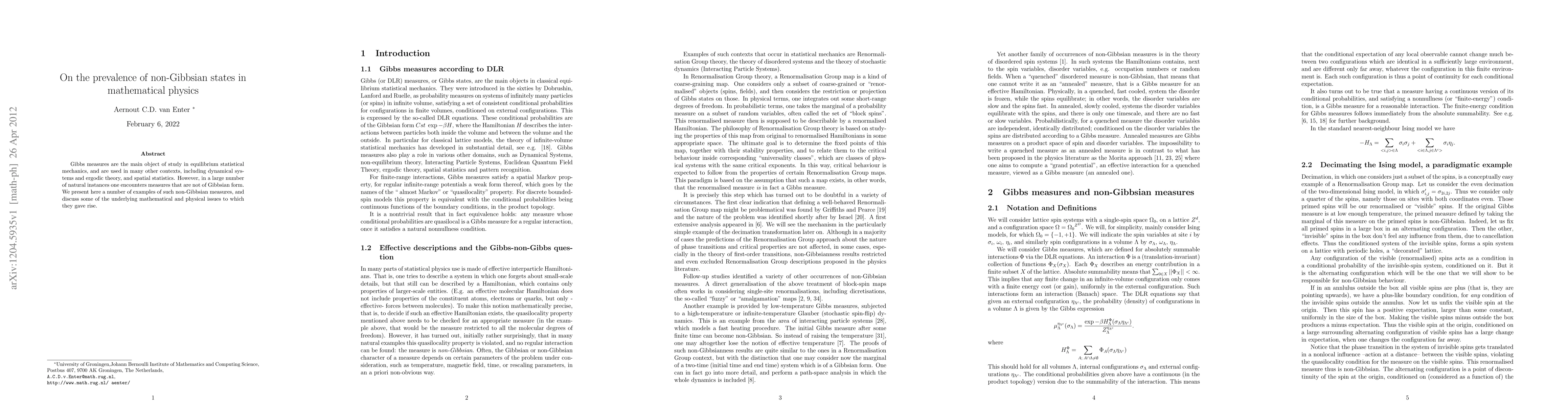 This paper explores measures in mathematical physics that deviate from Gibbsian forms, presenting examples of non-Gibbsian states and discussing the associated mathematical and physical implications. The study highlights the prevalence of such non-standard measures in natural systems.