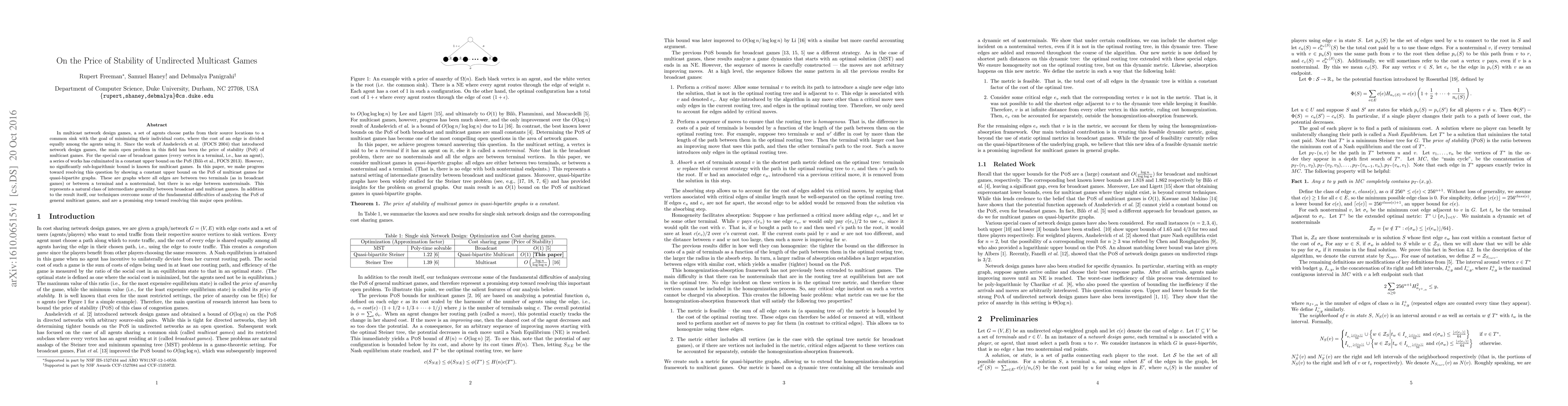 This paper establishes a constant upper bound on the price of stability for multicast games in quasi-bipartite graphs, a class of networks that lie between broadcast and general multicast games. The techniques developed also address key challenges in analyzing the price of stability for general multicast games.