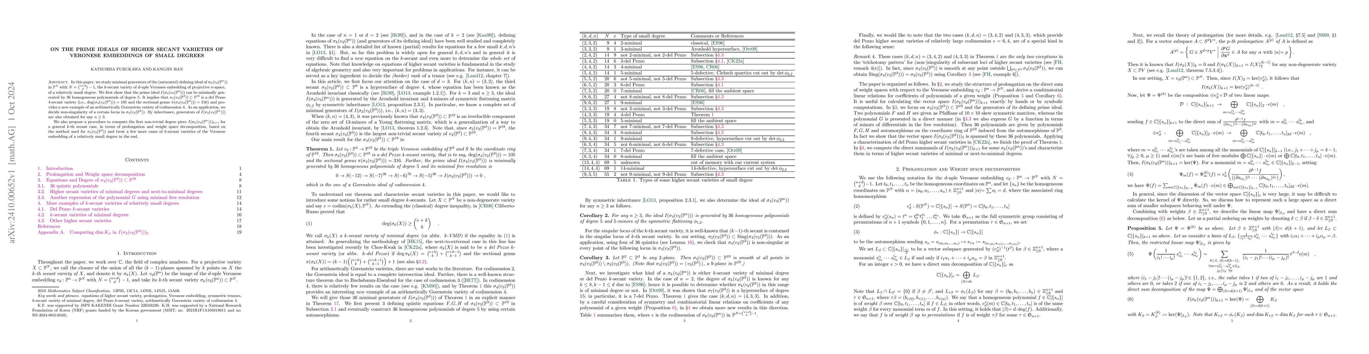 This paper investigates the prime ideals and minimal generators of the defining ideal of $k$-secant varieties of $d$-uple Veronese embeddings of projective $n$-space for small degrees. It specifically demonstrates that $I(\sigma_4(v_3(\mathbb{P}^3)))$ is minimally generated by 36 homogeneous polynomials of degree 5, establishing $\sigma_4(v_3(\mathbb{P}^3))$ as a del Pezzo $4$-secant variety and providing a new example of an arithmetically Gorenstein variety. The study also outlines a procedure for computing generators for more general secant varieties.