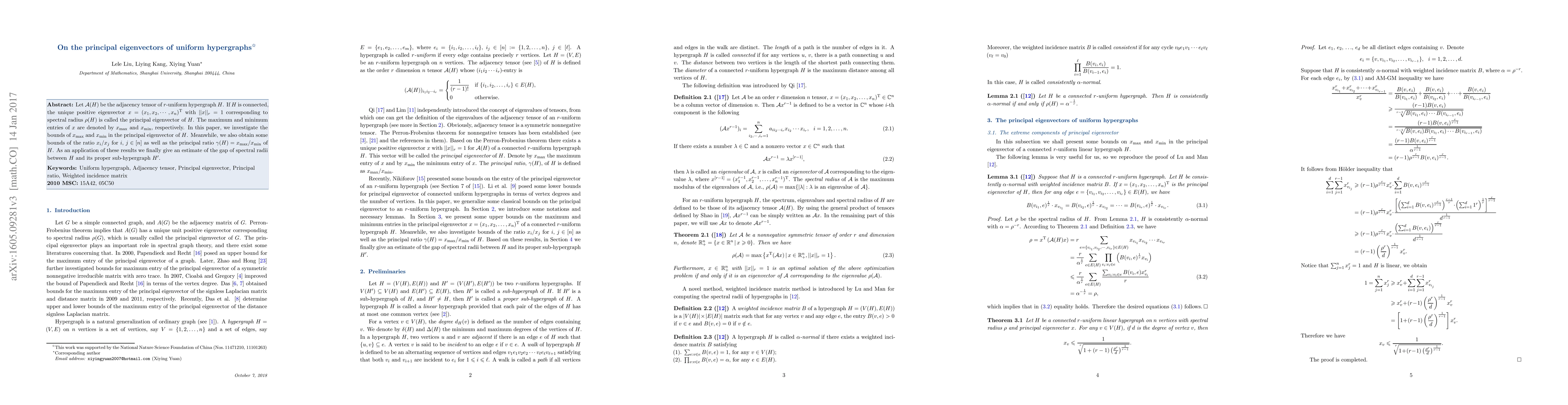 This paper studies the principal eigenvector of connected $r$-uniform hypergraphs, focusing on bounds for its maximum and minimum entries, and ratios between entries. It also estimates the spectral radius gap between a hypergraph and its sub-hypergraph, utilizing these eigenvector properties.