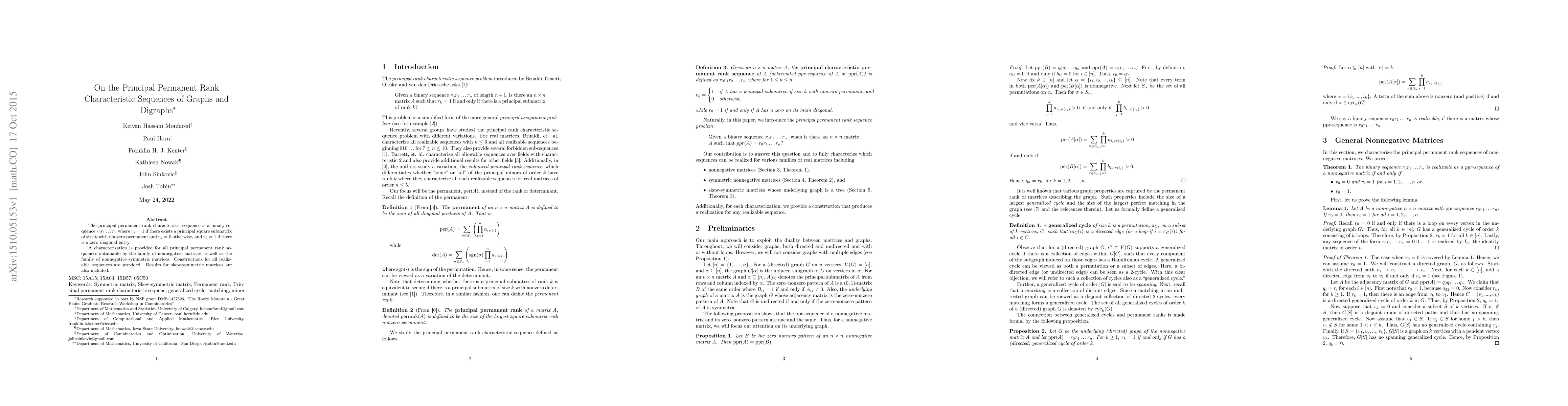 This paper characterizes the principal permanent rank sequences for nonnegative matrices and nonnegative symmetric matrices, providing constructions for all realizable sequences. It also extends the results to skew-symmetric matrices.