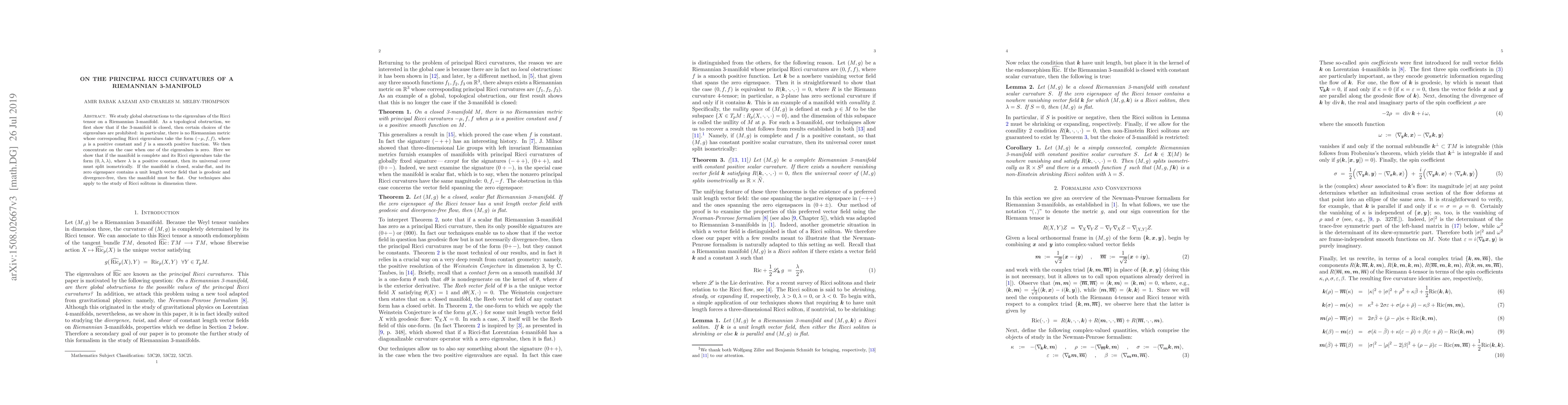 We study global obstructions to the eigenvalues of the Ricci tensor on a Riemannian 3-manifold. As a topological obstruction, we first show that if the 3-manifold is closed, then certain choices of the eigenvalues are prohibited: in particular, there is no Riemannian metric whose corresponding Ricci eigenvalues take the form $(-\mu,f,f)$, where $\mu$ is a positive constant and $f$ is a smooth positive function. We then concentrate on the case when one of the eigenvalues is zero. Here we show that if the manifold is complete and its Ricci eigenvalues take the form $(0,\lambda,\lambda)$, where $\lambda$ is a positive constant, then its universal cover must split isometrically. If the manifold is closed, scalar-flat, and its zero eigenspace contains a unit length vector field that is geodesic and divergence-free, then the manifold must be flat. Our techniques also apply to the study of Ricci solitons in dimension three.