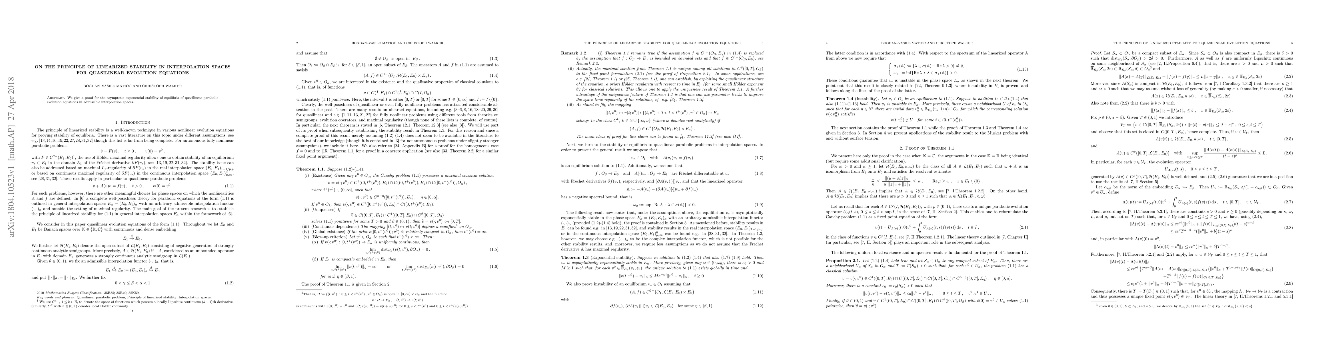 Summary: This paper proves the asymptotic exponential stability of equilibria in quasilinear parabolic evolution equations within admissible interpolation spaces, establishing a principle of linearized stability.