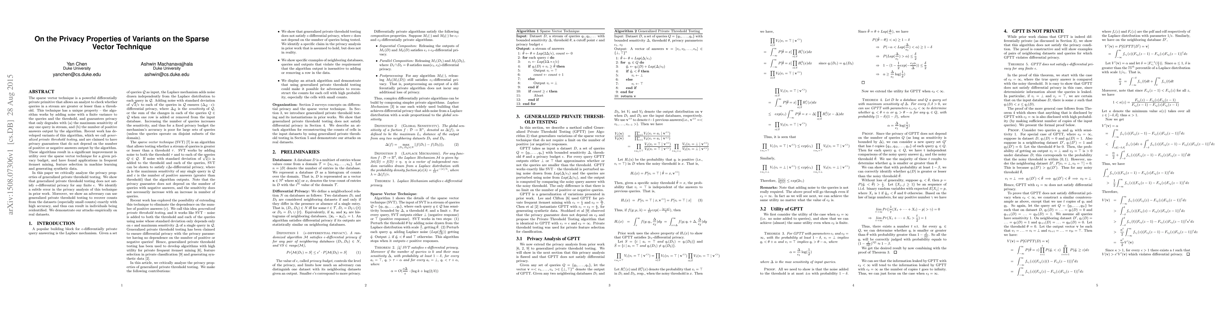 This paper critically examines the privacy properties of generalized private threshold testing, a variant of the sparse vector technique, revealing that it fails to satisfy epsilon-differential privacy and can lead to reidentification of individuals, especially for small counts, as demonstrated through empirical attacks on real datasets.