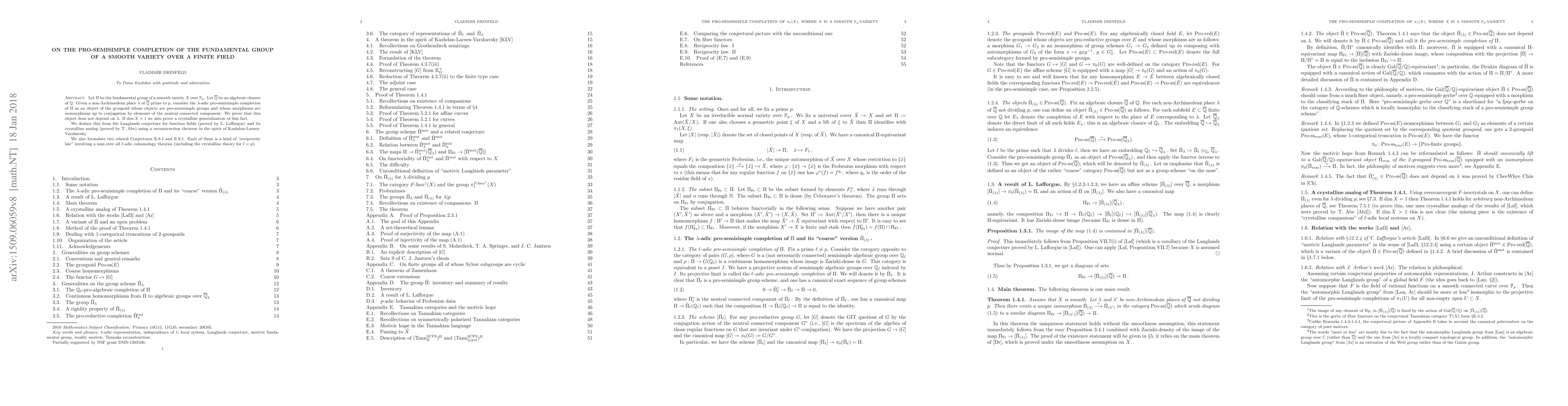 This paper investigates the $\lambda$-adic pro-semisimple completion of the fundamental group of a smooth variety over a finite field, proving its independence of $\lambda$. It uses Langlands conjectures and a reconstruction theorem to derive this result and formulates two related conjectures involving $l$-adic cohomology theories.