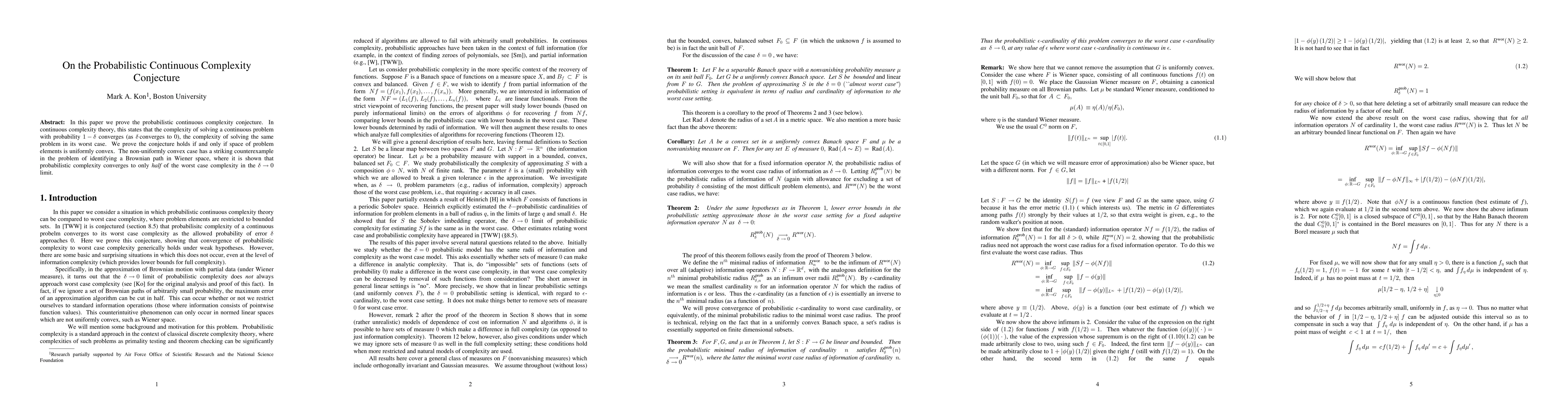 In this paper we prove the probabilistic continuous complexity conjecture. In continuous complexity theory, this states that the complexity of solving a continuous problem with probability approaching 1 converges (in this limit) to the complexity of solving the same problem in its worst case. We prove the conjecture holds if and only if space of problem elements is uniformly convex. The non-uniformly convex case has a striking counterexample in the problem of identifying a Brownian path in Wiener space, where it is shown that probabilistic complexity converges to only half of the worst case complexity in this limit.
