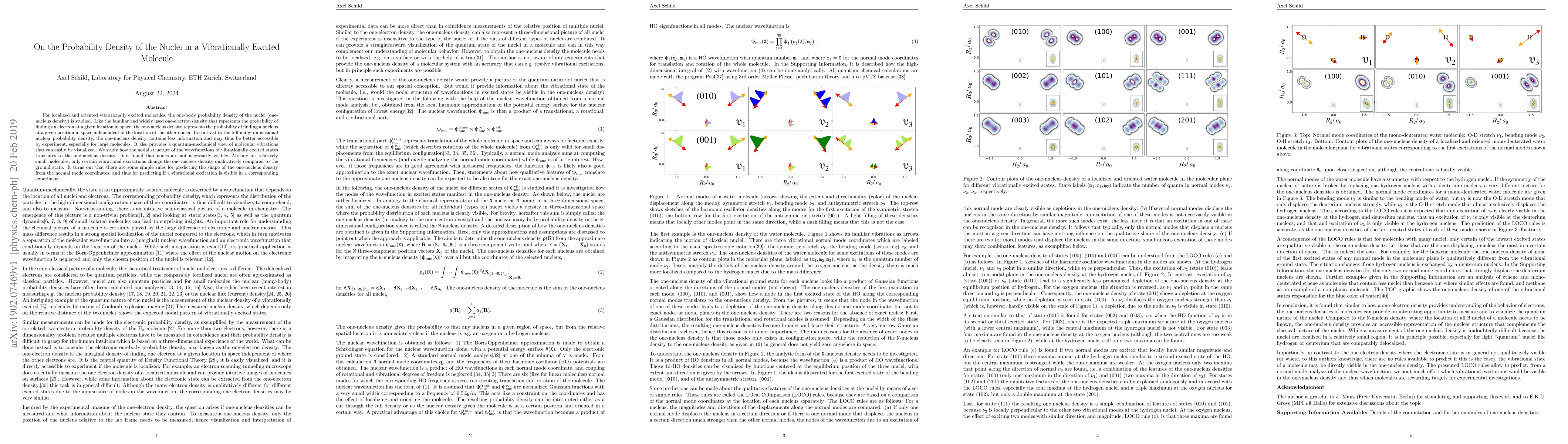 For localized and oriented vibrationally excited molecules, the one-body probability density of the nuclei (one-nucleus density) is studied. Like the familiar and widely used one-electron density that represents the probability of finding an electron at a given location in space, the one-nucleus density represents the probability of finding a nucleus at a given position in space independent of the location of the other nuclei. In contrast to the full many-dimensional nuclear probability density, the one-nucleus density contains less information and may thus be better accessible by experiment, especially for large molecules. It also provides a quantum-mechanical view of molecular vibrations that can easily be visualized. We study how the nodal structure of the wavefunctions of vibrationally excited states translates to the one-nucleus density. It is found that nodes are not necessarily visible: Already for relatively small molecules, only certain vibrational excitations change the one-nucleus density qualitatively compared to the ground state. It turns out that there are some simple rules for predicting the shape of the one-nucleus density from the normal mode coordinates, and thus for predicting if a vibrational excitation is visible in a corresponding experiment.
