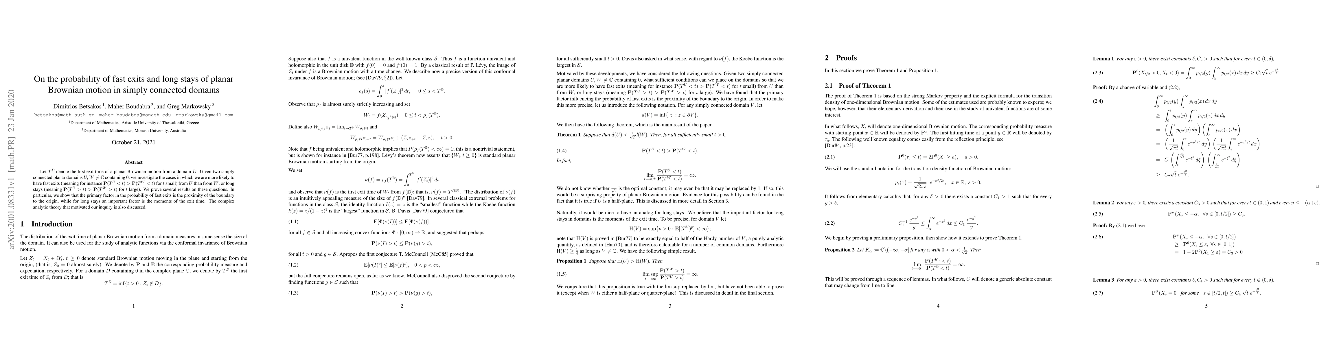 Let $T^D$ denote the first exit time of a planar Brownian motion from a