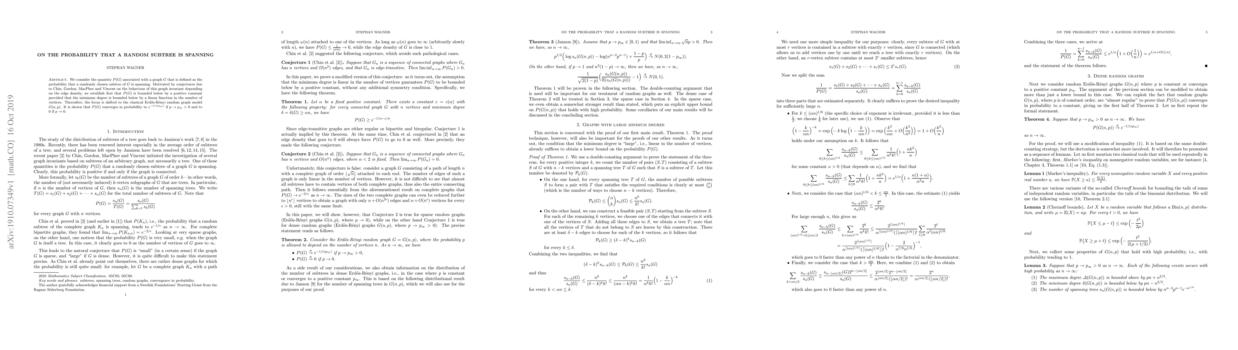 A study on random graphs found that the probability a randomly chosen subtree is spanning decreases as edge density increases, converging to 0 in extreme cases.