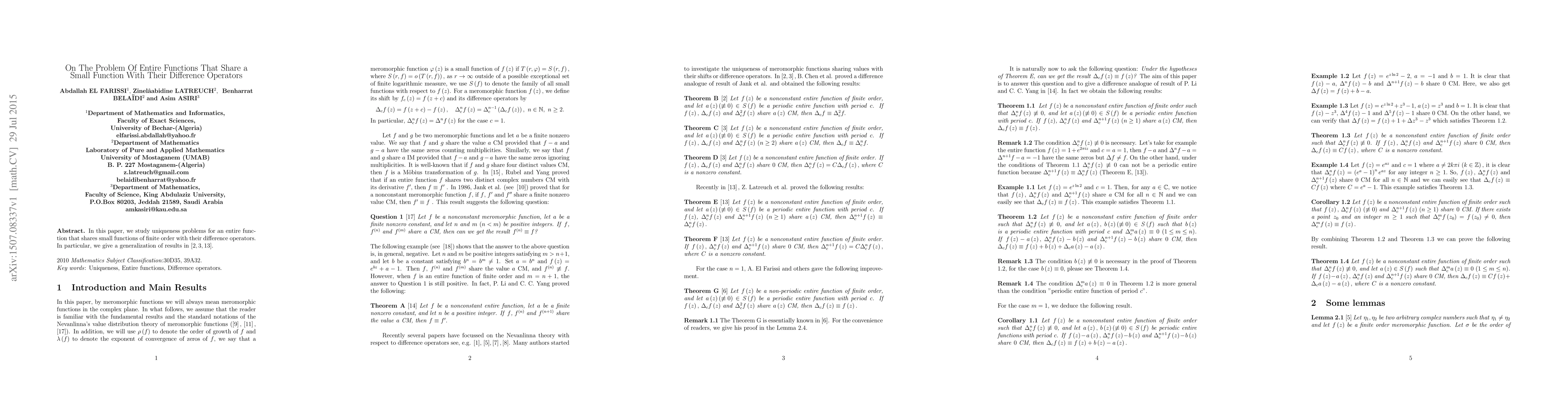 Summary: This paper investigates uniqueness conditions for entire functions that share small functions of finite order with their difference operators, extending previous results from [2, 3, 13]. The study provides a generalized framework for these uniqueness problems.