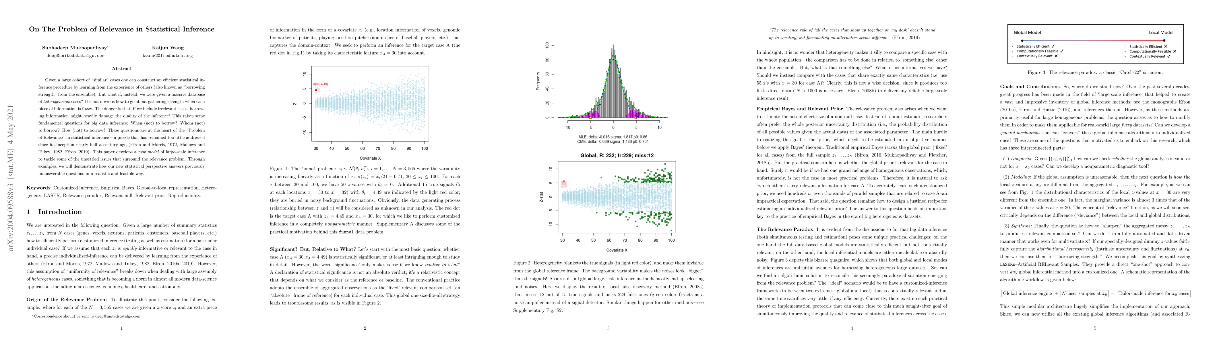 This paper is dedicated to the "50 Years of the Relevance Problem" - a long-neglected topic that begs attention from practical statisticians who are concerned with the problem of drawing inference from large-scale heterogeneous data.
