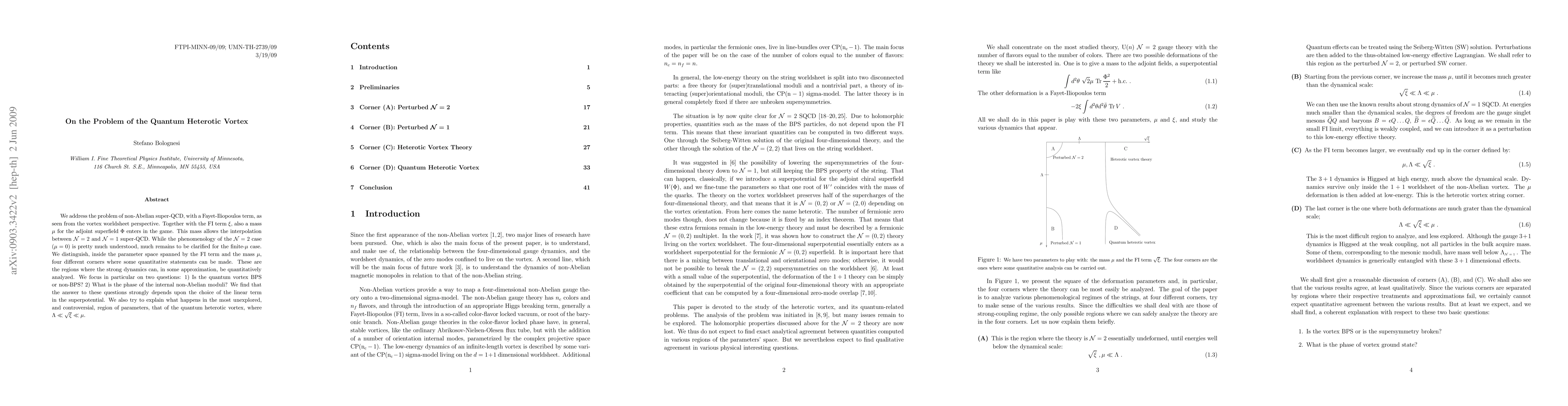 We address the problem of non-Abelian super-QCD, with a Fayet-Iliopoulos term, as seen from the vortex worldsheet perspective. Together with the FI term $\xi$, also a mass $\mu$ for the adjoint superfield $\Phi$ enters in the game. This mass allows the interpolation between $\N=2$ and $\N=1$ super-QCD. While the phenomenology of the $\N=2$ case ($\mu=0$) is pretty much understood, much remains to be clarified for the finite-$\mu$ case. We distinguish, inside the parameter space spanned by the FI term and the mass $\mu$, four different corners where some quantitative statements can be made. These are the regions where the strong dynamics can, in some approximation, be quantitatively analyzed. We focus in particular on two questions: 1) Is the quantum vortex BPS or non-BPS? 2) What is the phase of the internal non-Abelian moduli? We find that the answer to these questions strongly depends upon the choice of the linear term in the superpotential. We also try to explain what happens in the most unexplored, and controversial, region of parameters, that of the quantum heterotic vortex, where $\Lambda \ll \sqrt{\xi} \ll \mu$.