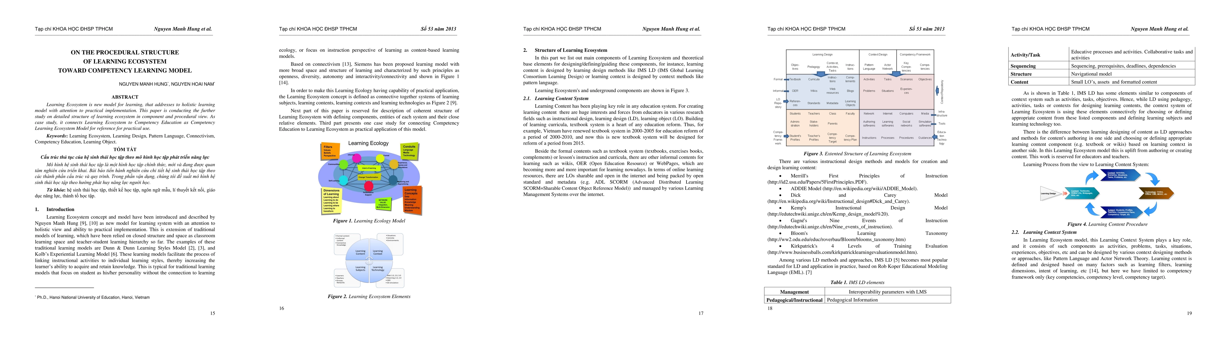 This paper explores the procedural structure of the Learning Ecosystem model for competency learning, highlighting its connections to Competency Education. It aims to provide a practical reference for implementing this holistic learning approach.