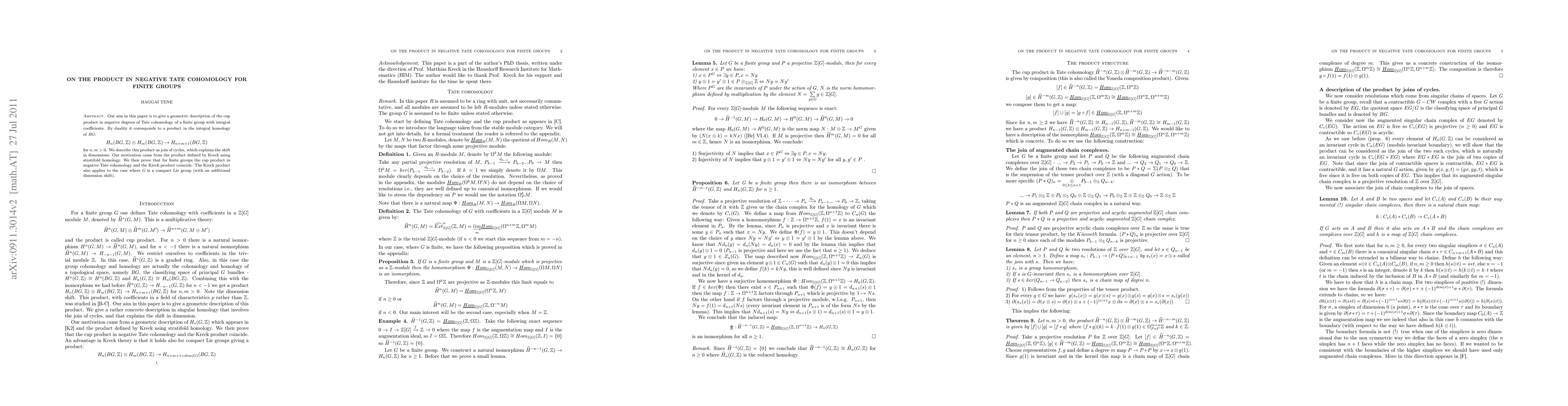 This paper geometrically describes the cup product in negative degrees of Tate cohomology for finite groups, relating it to a product in the integral homology of $BG$ through duality. It shows that this product corresponds to the join of cycles, explaining the dimensional shift, and proves that the cup product in negative Tate cohomology coincides with the Kreck product.