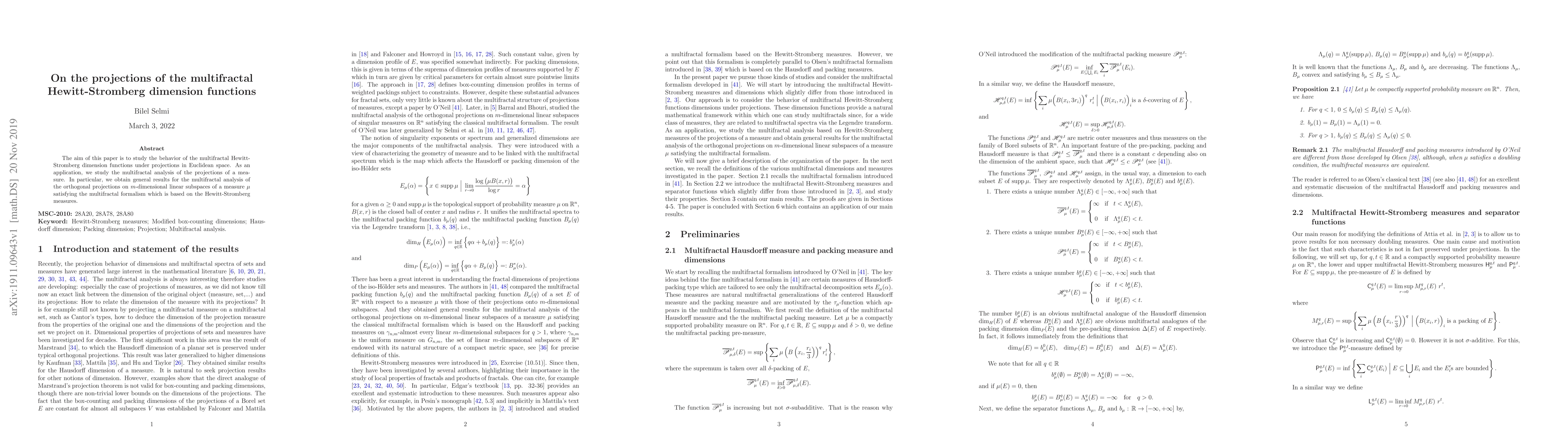 This paper investigates how multifractal Hewitt-Stromberg dimension functions behave under projections in Euclidean space and applies this to analyze the multifractal properties of measure projections, obtaining general results for orthogonal projections on $m$-dimensional linear subspaces.
