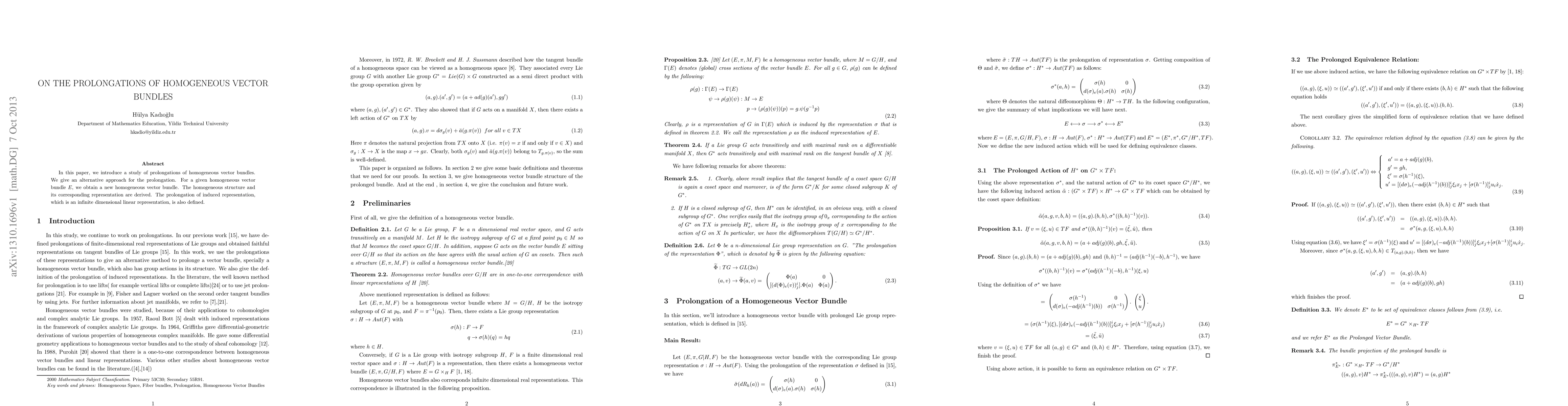 This paper introduces a new approach to prolonging homogeneous vector bundles, resulting in an infinite-dimensional linear representation and exploring the properties of the resulting bundle.