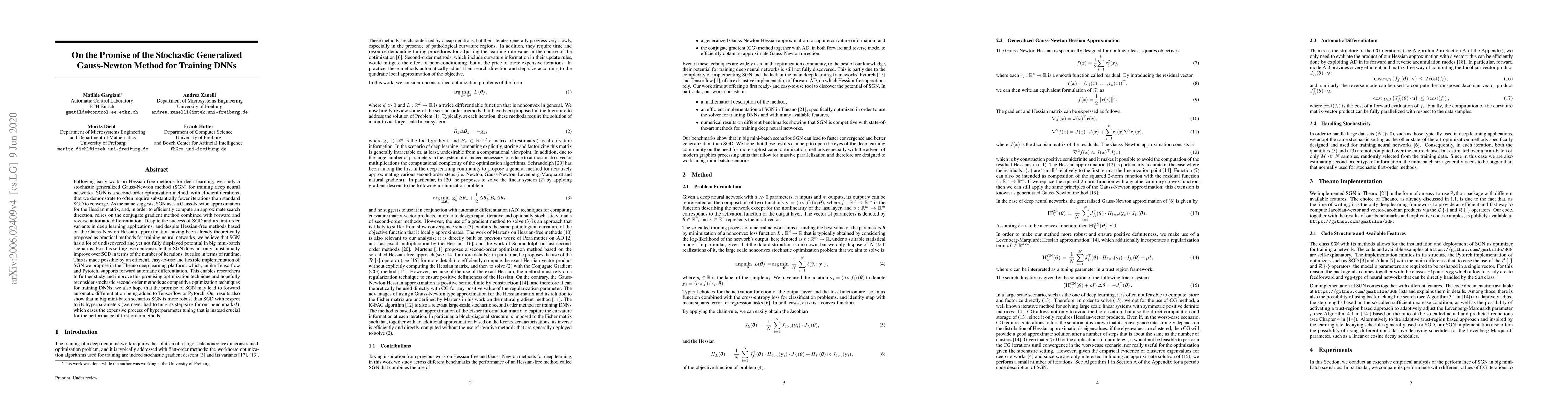 This paper explores the stochastic generalized Gauss-Newton method (SGN) for training deep neural networks (DNNs), demonstrating that it often requires fewer iterations and less runtime compared to SGD, especially in big mini-batch scenarios. The study highlights SGN's robustness and ease of implementation in Theano, advocating for its reconsideration as a competitive second-order optimization technique.