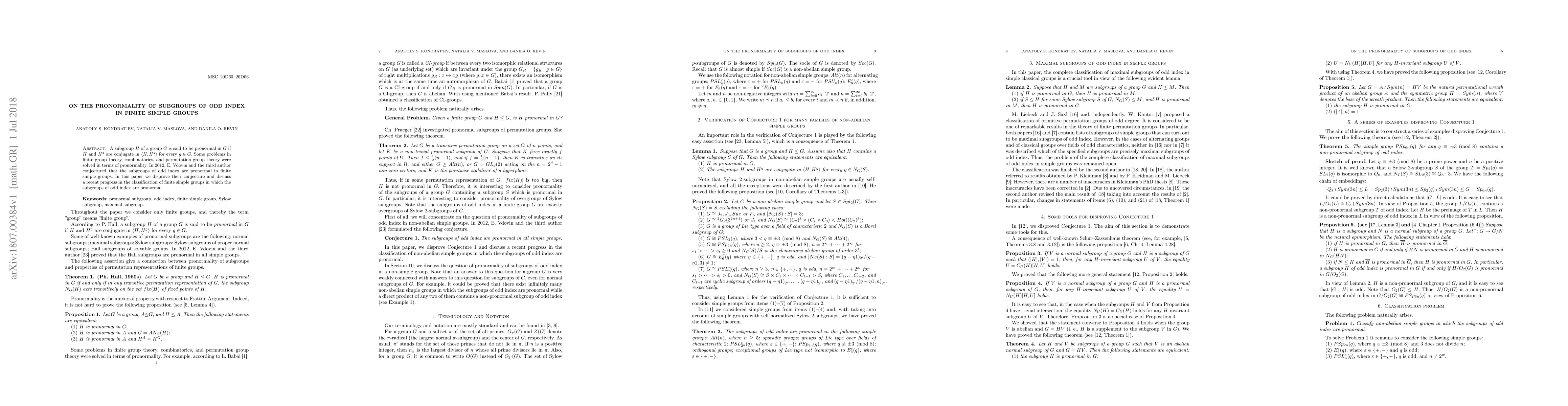This paper disproves the conjecture that subgroups of odd index in finite simple groups are pronormal, and discusses recent advancements in the classification of finite simple groups where such subgroups maintain pronormality.
