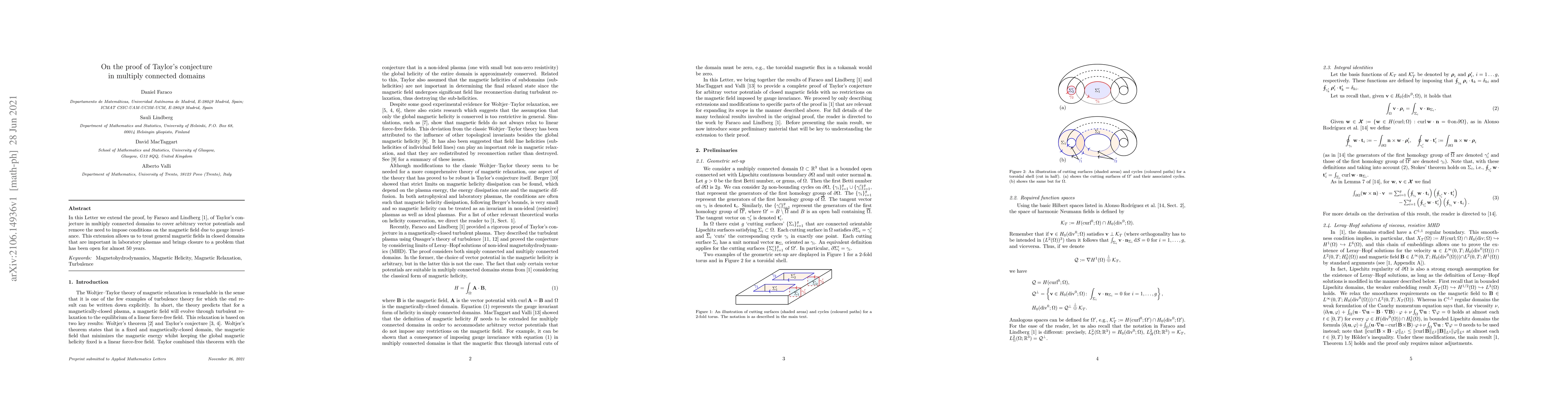 This paper extends the proof of Taylor's conjecture in multiply connected domains to include arbitrary vector potentials, eliminating the need for specific magnetic field conditions, thus addressing a long-standing problem in laboratory plasmas.