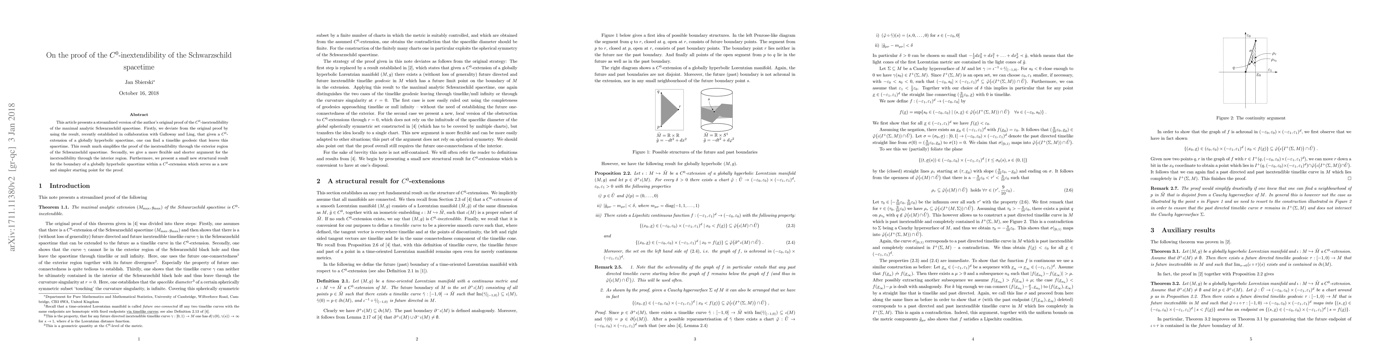 This paper simplifies the proof of $C^0$-inextendibility of the maximal analytic Schwarzschild spacetime by leveraging a recent result on timelike geodesics and offering a more flexible argument for the interior region. It also introduces a new structural result for the boundary of globally hyperbolic spacetimes within $C^0$-extensions.