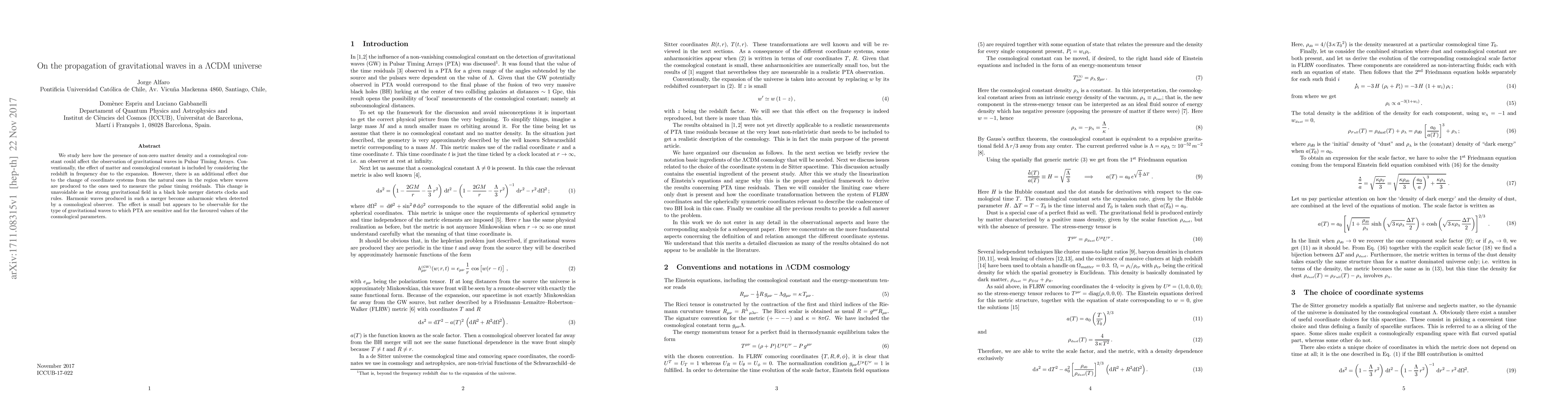We study here how the presence of non-zero matter density and a cosmological constant could affect the observation of gravitational waves in Pulsar Timing Arrays. Conventionally, the effect of matter and cosmological constant is included by considering the redshift in frequency due to the expansion. However, there is an additional effect due to the change of coordinate systems from the natural ones in the region where waves are produced to the ones used to measure the pulsar timing residuals. This change is unavoidable as the strong gravitational field in a black hole merger distorts clocks and rules. Harmonic waves produced in such a merger become anharmonic when detected by a cosmological observer. The effect is small but appears to be observable for the type of gravitational waves to which PTA are sensitive and for the favoured values of the cosmological parameters.