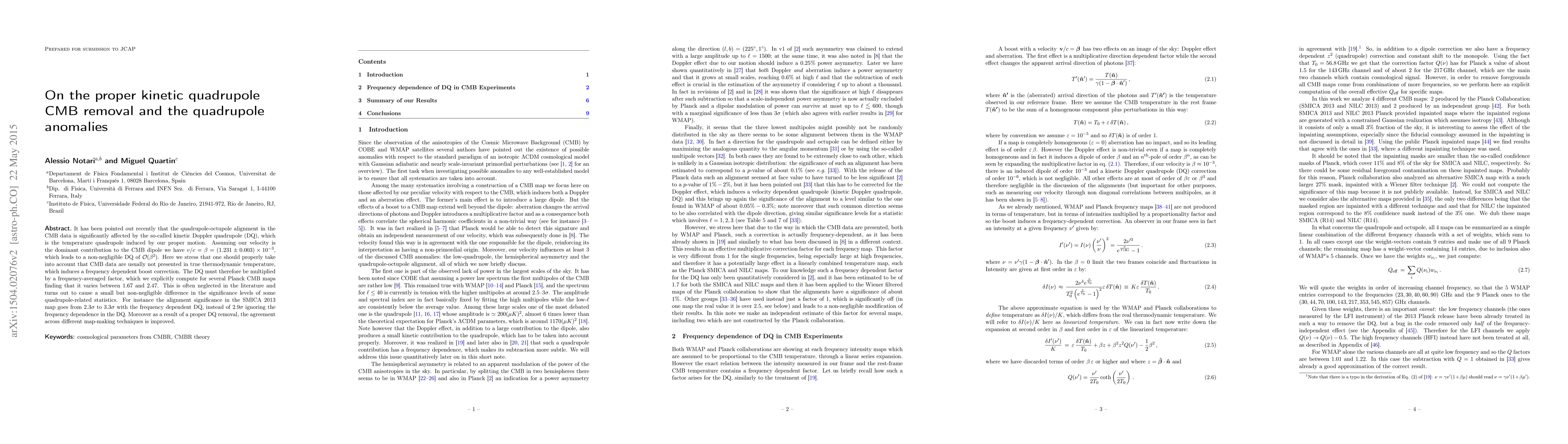 This paper discusses the importance of properly accounting for the kinetic Doppler quadrupole in CMB data, which affects the observed temperature quadrupole. It finds that neglecting a frequency-dependent correction factor can lead to incorrect significance levels for quadrupole-related statistics and impacts the alignment significance in CMB maps.