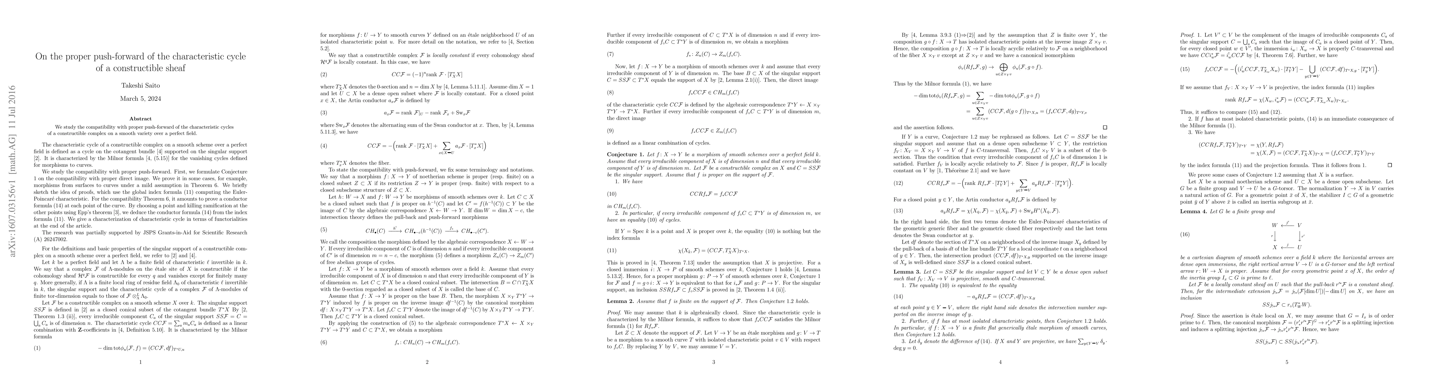 Summary: This paper investigates how the characteristic cycles of constructible complexes on smooth varieties over perfect fields behave under proper push-forward, focusing on their compatibility and properties.