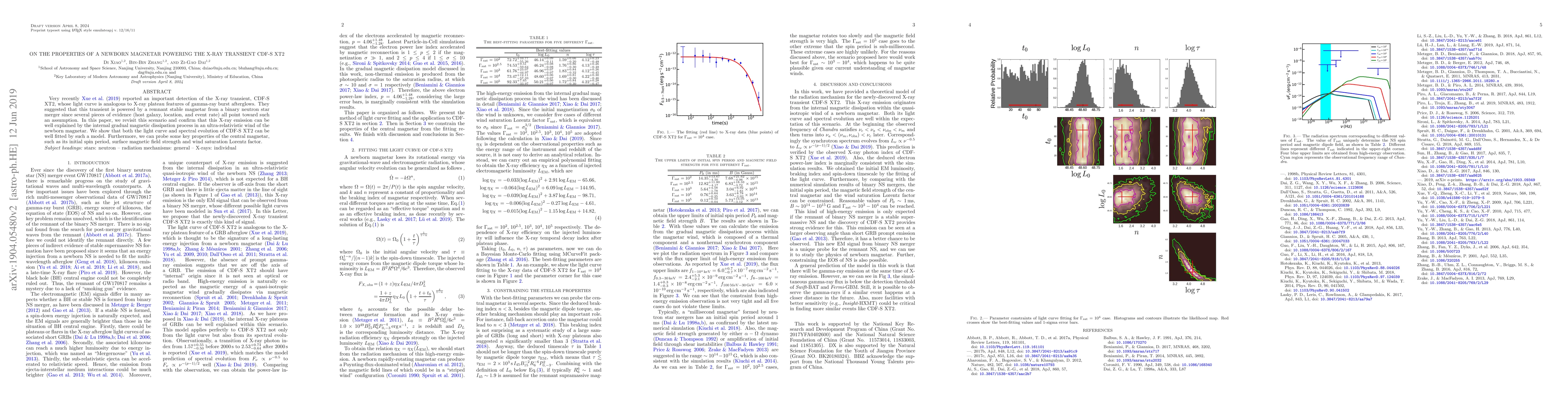 This paper confirms that the X-ray transient CDF-S XT2 is powered by a newborn magnetar from a binary neutron star merger, explaining its light curve and spectral evolution through the magnetar's internal magnetic dissipation in an ultra-relativistic wind. Key properties of the magnetar, such as its initial spin period and magnetic field strength, are also probed.