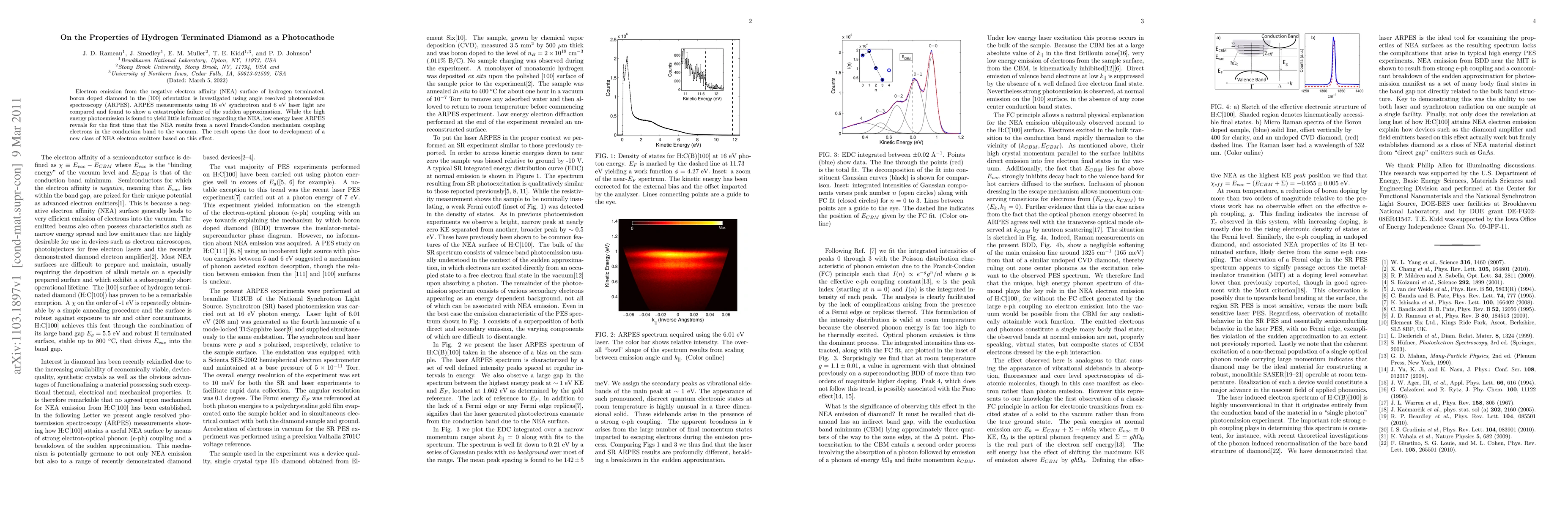 Researchers used ARPES to study hydrogen-terminated diamond as a photocathode and found that low-energy laser light reveals a novel Franck-Condon mechanism leading to electron emission from the material's negative electron affinity surface.