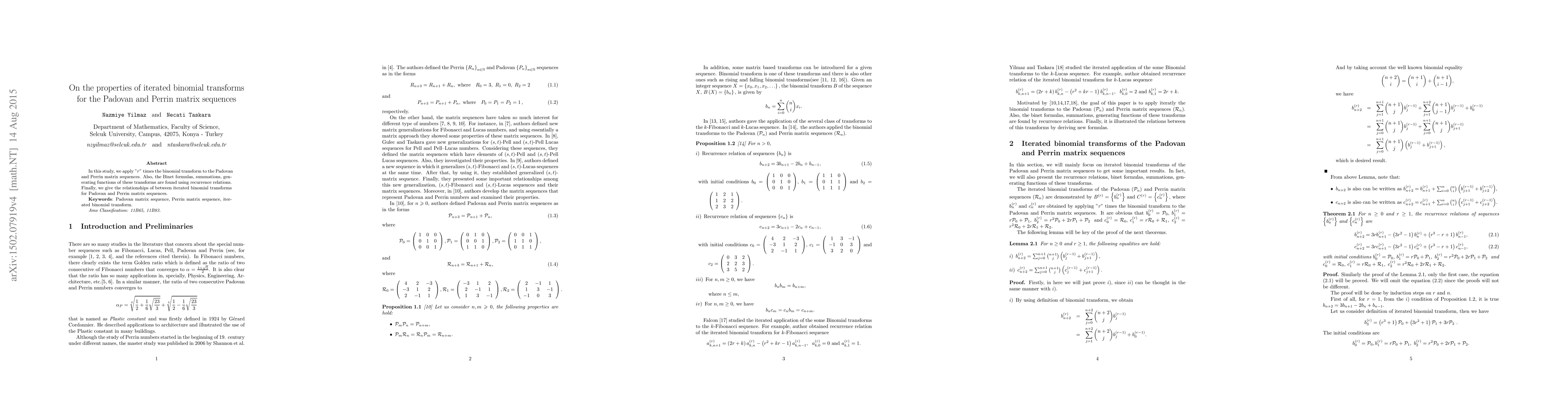Researchers applied iterated binomial transforms to Padovan and Perrin matrix sequences, finding relationships between their properties and using Binet formulas for summations and generating functions.