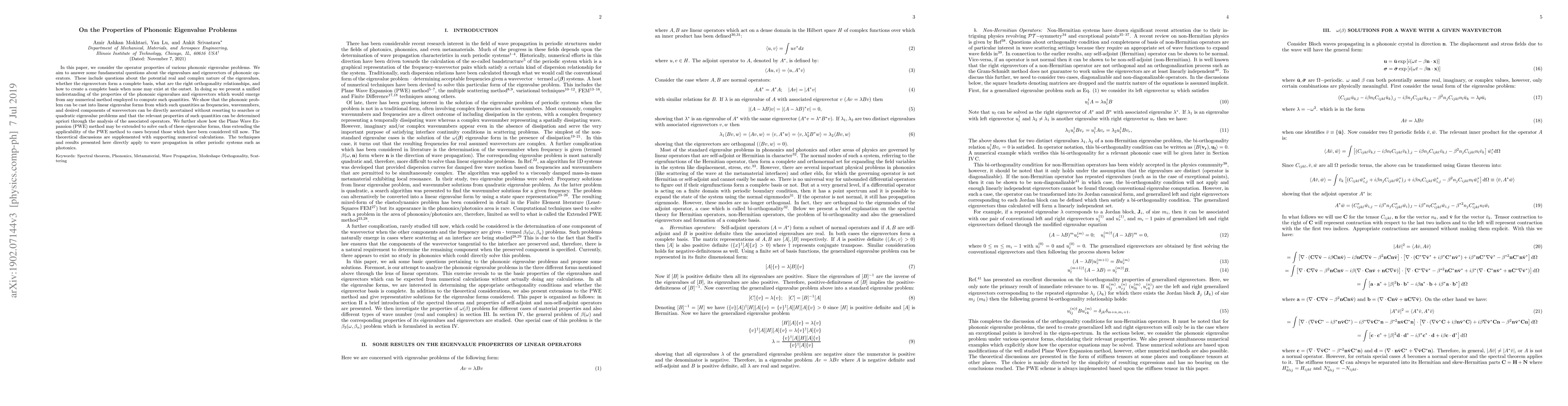 This paper explores the properties of phononic eigenvalue problems, providing a unified understanding of eigenvalues and eigenvectors. It demonstrates how to cast the phononic problem into linear eigenvalue forms, allowing for direct calculation of frequencies, wavenumbers, and wavevector components. The Plane Wave Expansion (PWE) method is extended to solve these forms, broadening its applicability. The findings also apply to wave propagation in other periodic systems like photonics.