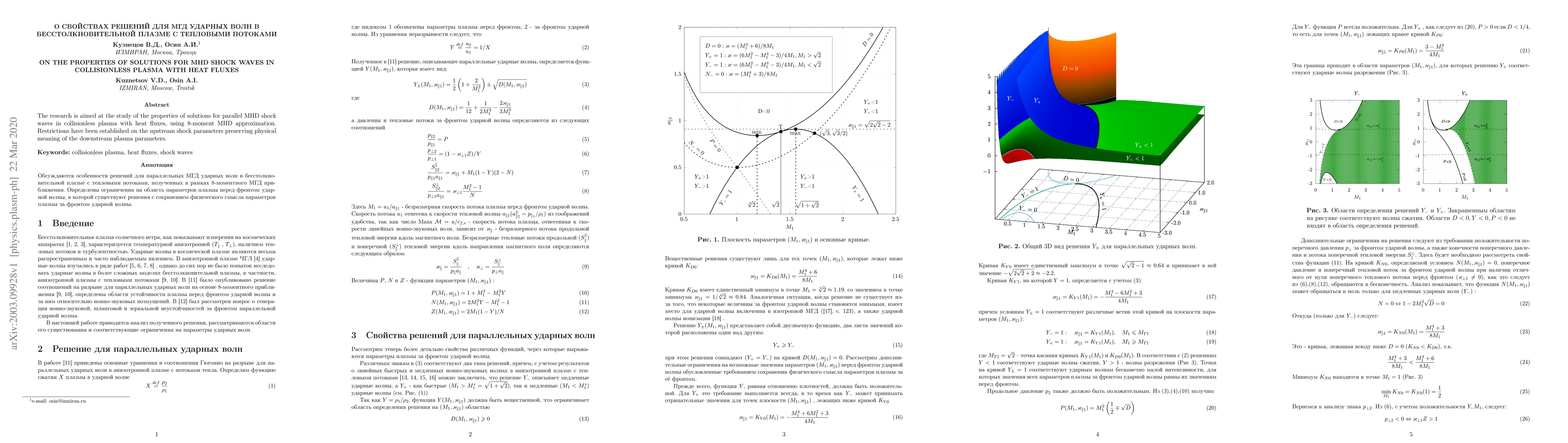 The research is aimed at the study of the properties of solutions for parallel MHD shock waves in collisionless plasma with heat fluxes, using 8-moment MHD approximation. Restrictions have been established on the upstream shock parameters preserving physical meaning of the downstream plasma parameters.