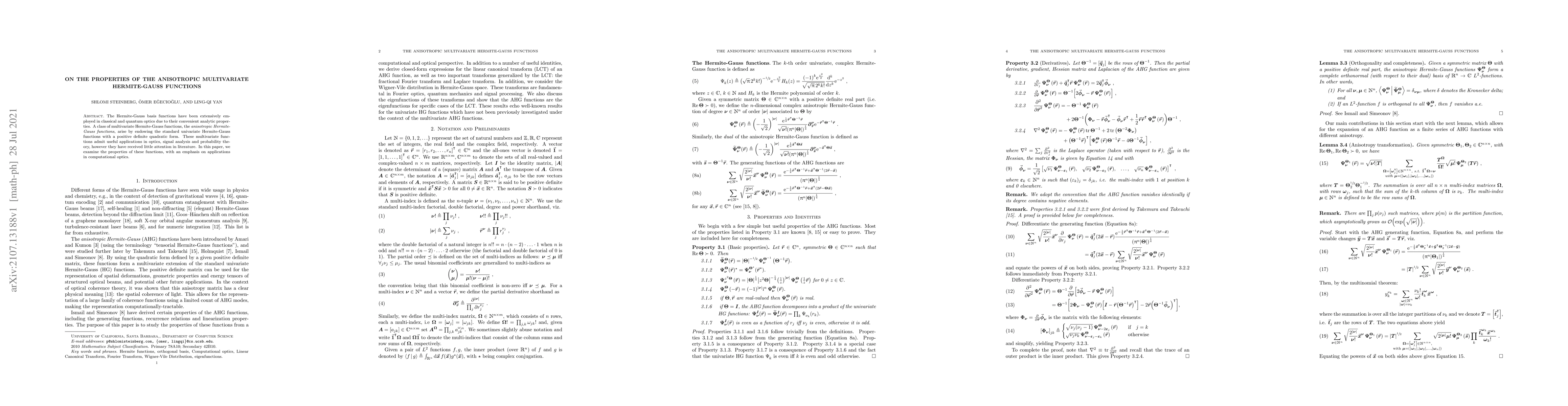 The paper provides detailed derivations and proofs of properties of anisotropic multivariate Hermite-Gauss functions, extending univariate results to the multivariate case.