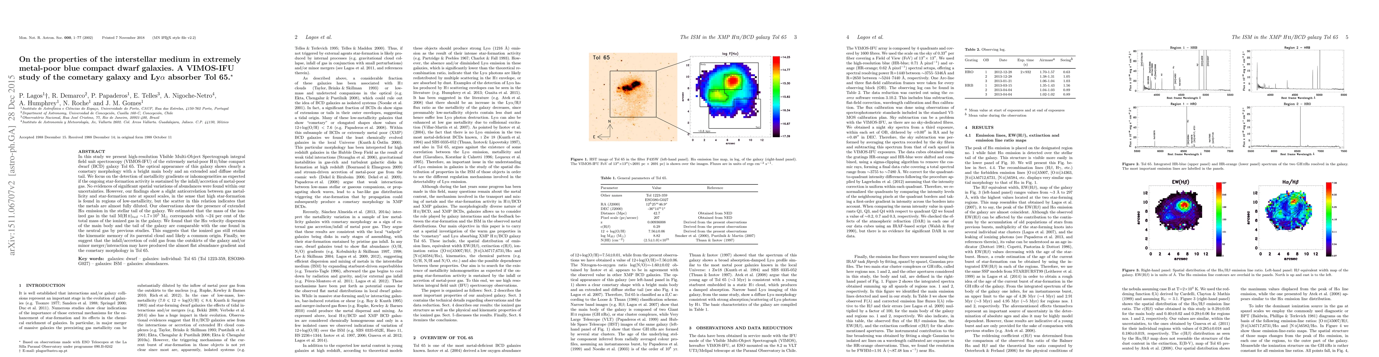 In this study we present high-resolution VIsible Multi-Object Spectrograph integral field unit spectroscopy (VIMOS-IFU) of the extremely metal-poor HII/blue compact dwarf (BCD) galaxy Tol 65. The optical appearance of this galaxy shows clearly a cometary morphology with a bright main body and an extended and diffuse stellar tail. We focus on the detection of metallicity gradients or inhomogeneities as expected if the ongoing star-formation activity is sustained by the infall/accretion of metal-poor gas. No evidences of significant spatial variations of abundances were found within our uncertainties. However, our findings show a slight anticorrelation between gas metallicity and star-formation rate at spaxel scales, in the sense that high star-formation is found in regions of low-metallicity, but the scatter in this relation indicates that the metals are almost fully diluted. Our observations show the presence of extended H$\alpha$ emission in the stellar tail of the galaxy. We estimated that the mass of the ionized gas in the tail M(HII)$_{tail} \sim$1.7$\times$10$^5$ M$_{\odot}$ corresponds with $\sim$ 24 per cent of the total mass of the ionized gas in the galaxy. We found that the H$\alpha$ velocity dispersion of the main body and the tail of the galaxy are comparable with the one found in the neutral gas by previous studies. This suggests that the ionized gas still retains the kinematic memory of its parental cloud and likely a common origin. Finally, we suggest that the infall/accretion of cold gas from the outskirts of the galaxy and/or minor merger/interaction may have produced the almost flat abundance gradient and the cometary morphology in Tol 65.