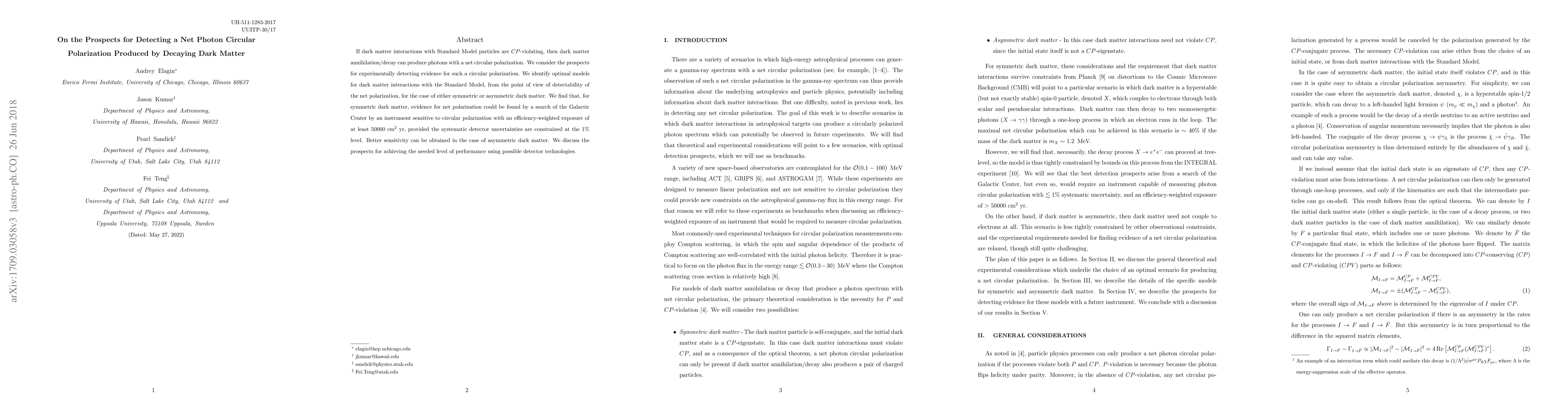 This paper explores the possibility of detecting net circularly polarized photons from decaying dark matter, indicating $CP$-violation in dark matter interactions. It identifies optimal dark matter models for such detection and suggests that asymmetric dark matter could offer better sensitivity, with the Galactic Center being a prime target for instruments capable of detecting circular polarization.
