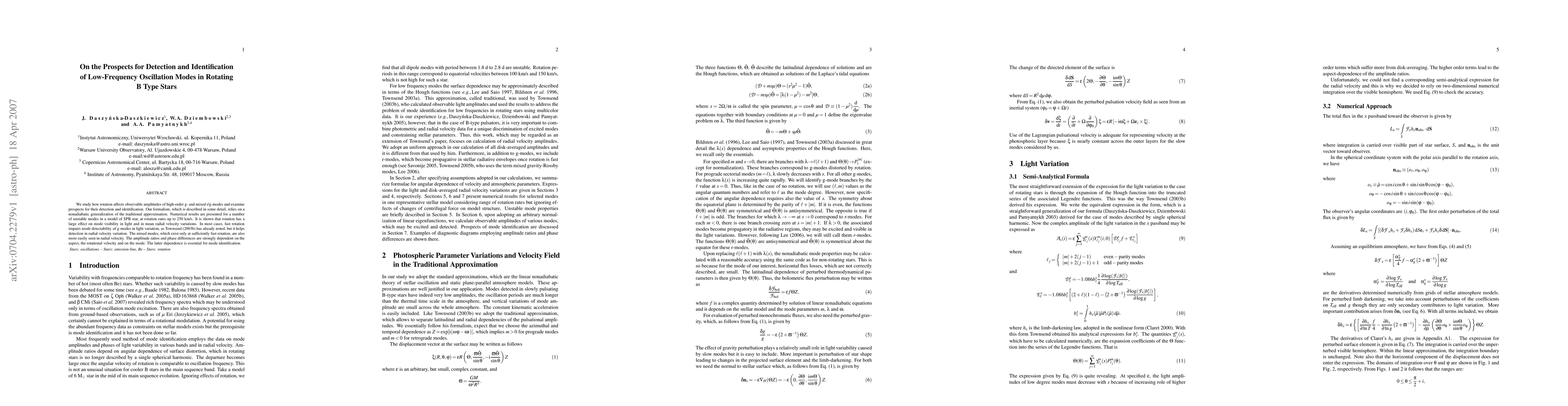 We study how rotation affects observable amplitudes of high-order g- and mixed r/g-modes and examine prospects for their detection and identification. Our formalism, which is described in some detail, relies on a nonadiabatic generalization of the traditional approximation. Numerical results are presented for a number of unstable modes in a model of SPB star, at rotation rates up to 250 km/s. It is shown that rotation has a large effect on mode visibility in light and in mean radial velocity variations. In most cases, fast rotation impairs mode detectability of g-modes in light variation, as Townsend (2003b) has already noted, but it helps detection in radial velocity variation. The mixed modes, which exist only at sufficiently fast rotation, are also more easily seen in radial velocity. The amplitude ratios and phase differences are strongly dependent on the aspect, the rotational velocity and on the mode. The latter dependence is essential for mode identification.