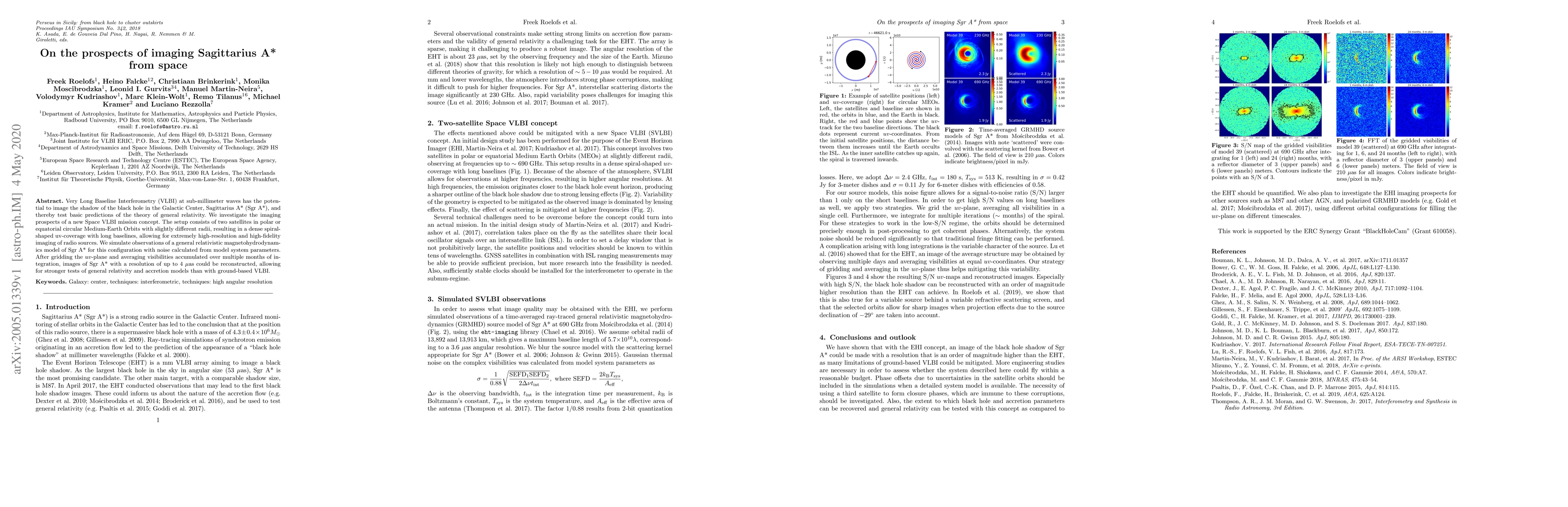 This paper explores the feasibility of imaging Sagittarius A* from space using a Space VLBI mission concept with two satellites in Medium-Earth Orbits. Simulations suggest that this setup could achieve resolutions up to 4 μas, enabling more rigorous tests of general relativity and accretion models compared to ground-based VLBI.
