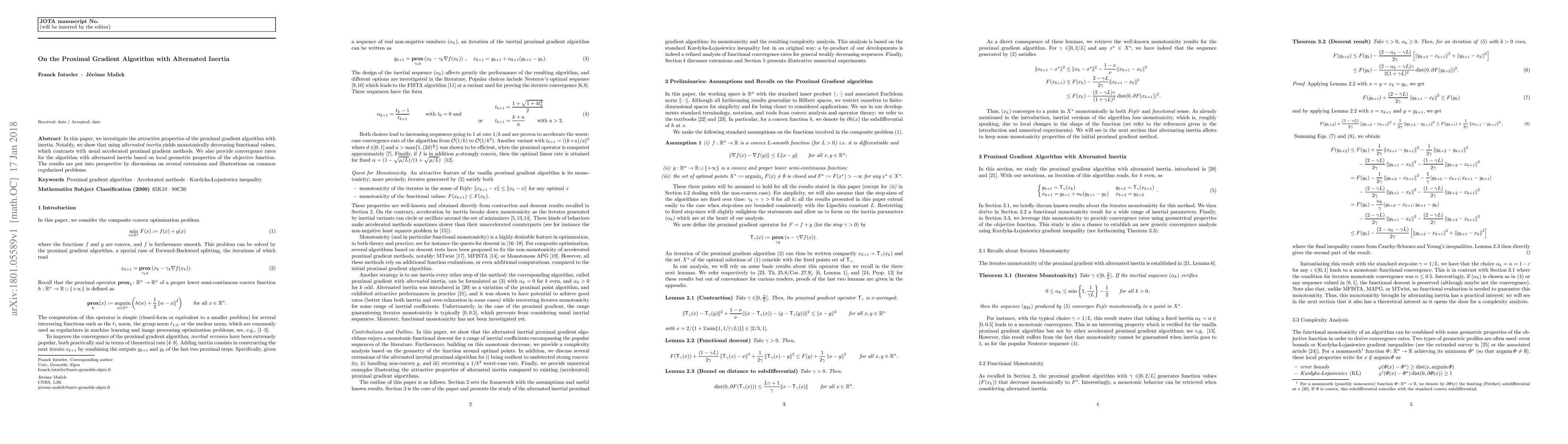 This paper explores the proximal gradient algorithm with alternated inertia, demonstrating its ability to yield monotonically decreasing functional values and providing convergence rates based on local geometric properties. It contrasts this approach with traditional accelerated methods and discusses its applications to common regularized problems.