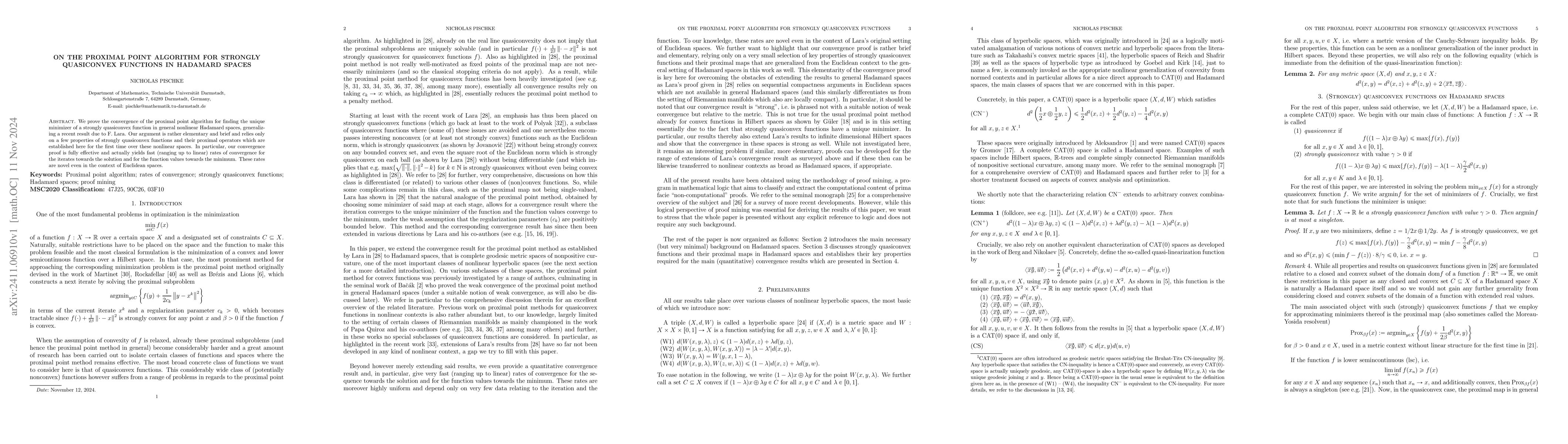 We prove the convergence of the proximal point algorithm for finding the unique minimizer of a strongly quasiconvex function in general nonlinear Hadamard spaces, generalizing a recent result due to F. Lara. Our argument is rather elementary and brief and relies only on a few properties of strongly quasiconvex functions and their proximal operators which are established here for the first time over these nonlinear spaces. In particular, our convergence proof is fully effective and actually yields fast (ranging up to linear) rates of convergence for the iterates towards the solution and for the function values towards the minimum. These rates are novel even in the context of Euclidean spaces.
