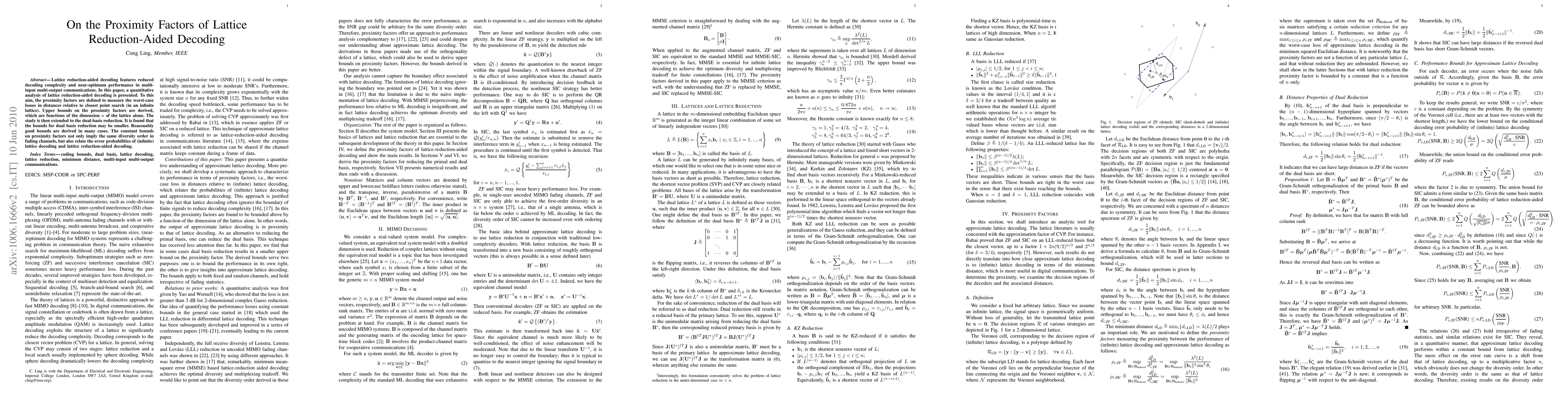 This paper analyzes lattice reduction-aided decoding in multi-input multi-output communications, defining proximity factors to measure worst-case distance losses. It derives upper bounds on these factors, showing that dual-basis reduction can yield smaller bounds and maintain the same diversity order in fading channels.