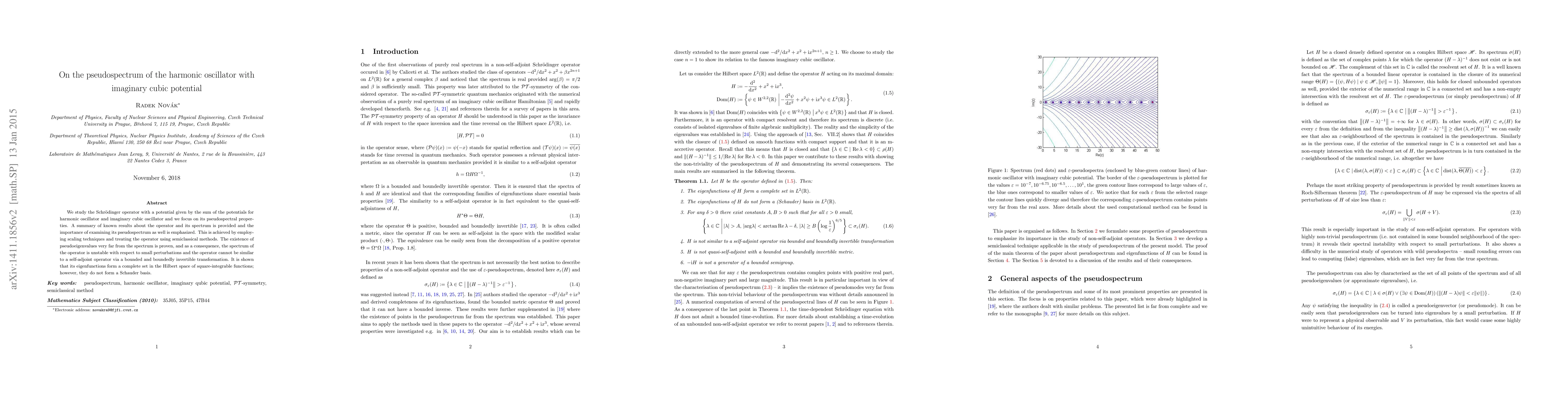 The study of a harmonic oscillator with an imaginary cubic potential reveals pseudospectral properties that lead to an unstable spectrum and the existence of pseudoeigenvalues far from the actual spectrum.