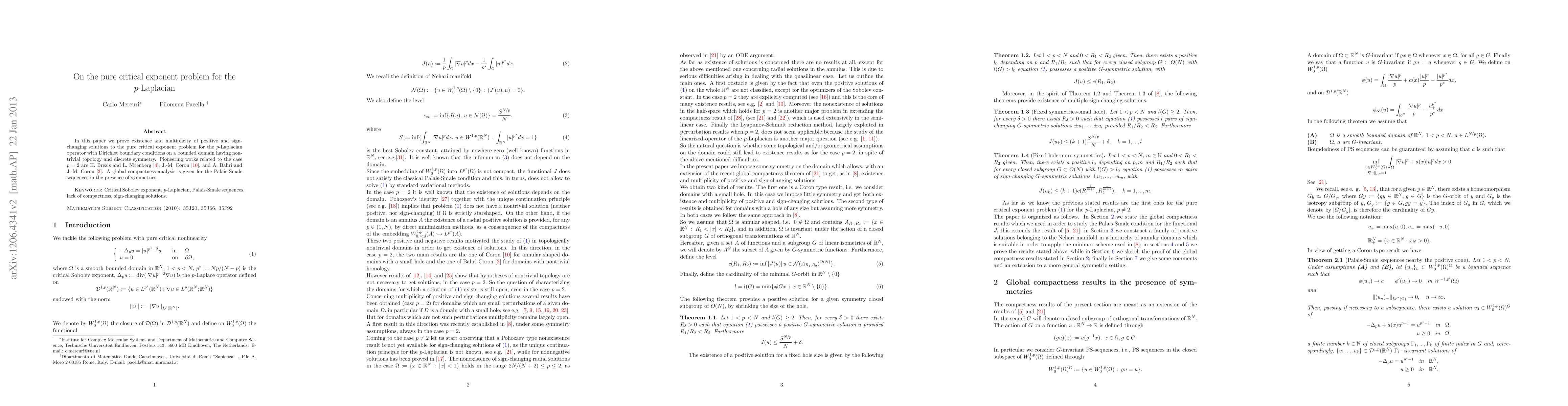 This research proves existence and multiple positive, as well as sign-changing solutions, for a specific mathematical problem involving the p-Laplacian operator under Dirichlet boundary conditions on a bounded domain with nontrivial topology and discrete symmetry. It builds upon previous works for p=2 and provides a global compactness analysis for Palais-Smale sequences with symmetries.