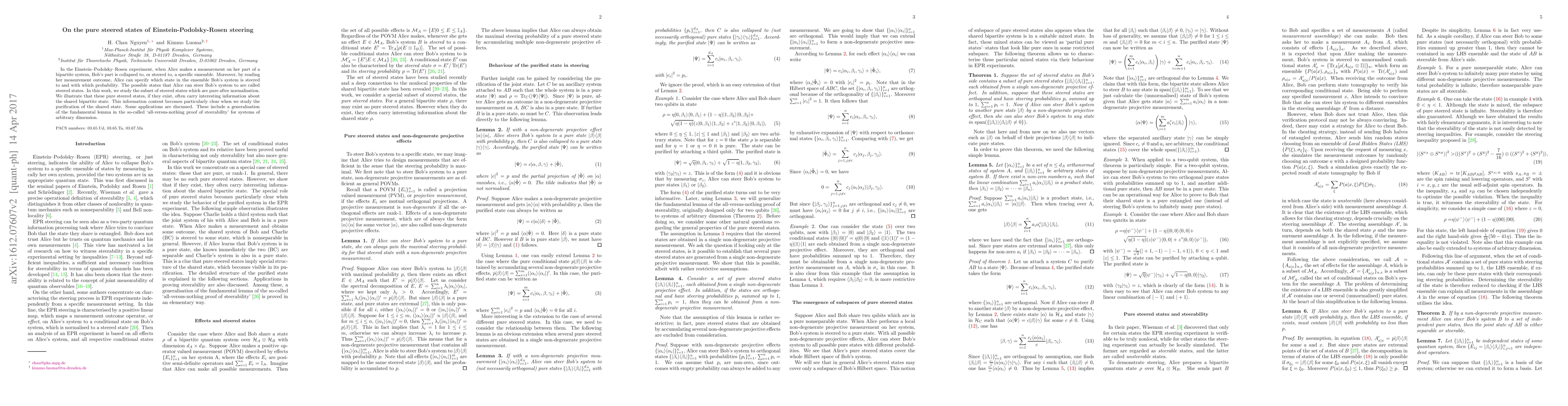 In the Einstein--Podolsky--Rosen experiment, when Alice makes a measurement on her part of a bipartite system, Bob's part is collapsed to, or steered to, a specific ensemble. Moreover, by reading her measurement outcome, Alice can specify which state in the ensemble Bob's system is steered to and with which probability. The possible states that Alice can steer Bob's system to are called steered states. In this work, we study the subset of steered states which are pure after normalisation. We illustrate that these pure steered states, if they exist, often carry interesting information about the shared bipartite state. This information content becomes particularly clear when we study the purification of the shared state. Some applications are discussed. These include a generalisation of the fundamental lemma in the so-called `all-versus-nothing proof of steerability' for systems of arbitrary dimension.