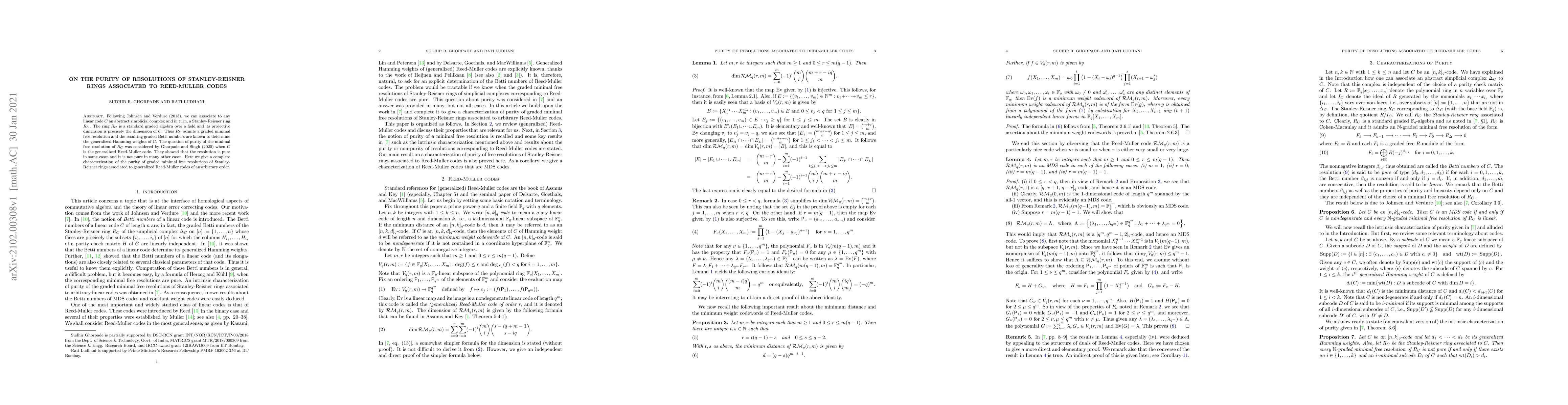 This paper provides a complete characterization of the purity of graded minimal free resolutions for Stanley-Reisner rings linked to generalized Reed-Muller codes of any order, extending previous results for specific cases.