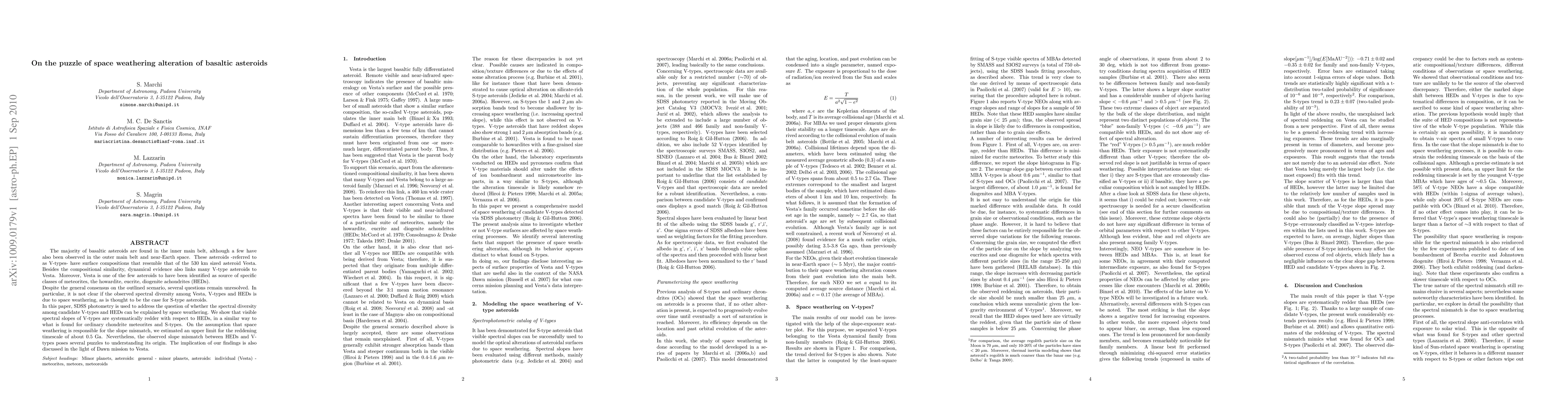 This paper investigates the spectral diversity among basaltic asteroids (V-types) and howardite, eucrite, diogenite (HED) meteorites, suggesting space weathering as a potential cause. Using SDSS photometry, it finds V-types have redder visible spectral slopes than HEDs, implying a reddening timescale of about 0.5Ga, though the exact origin of this spectral mismatch remains unclear.