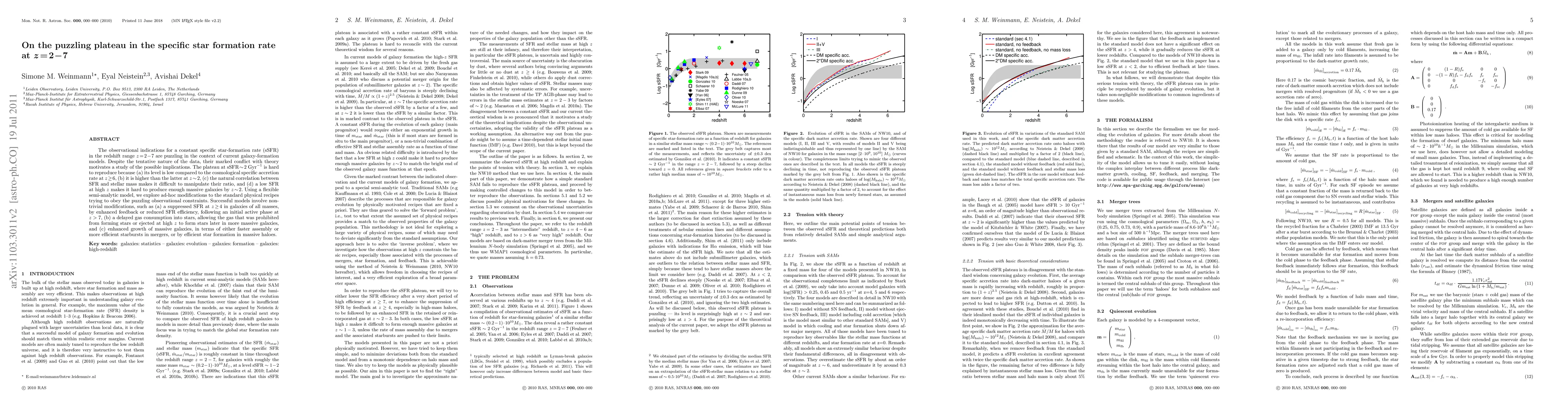 This paper investigates the puzzling observational plateau in the specific star-formation rate (sSFR) at redshifts z=2-7, which conflicts with current galaxy-formation models. Proposed modifications to the standard model include suppressed star formation at high redshifts, delayed gas consumption, and enhanced growth of massive galaxies.