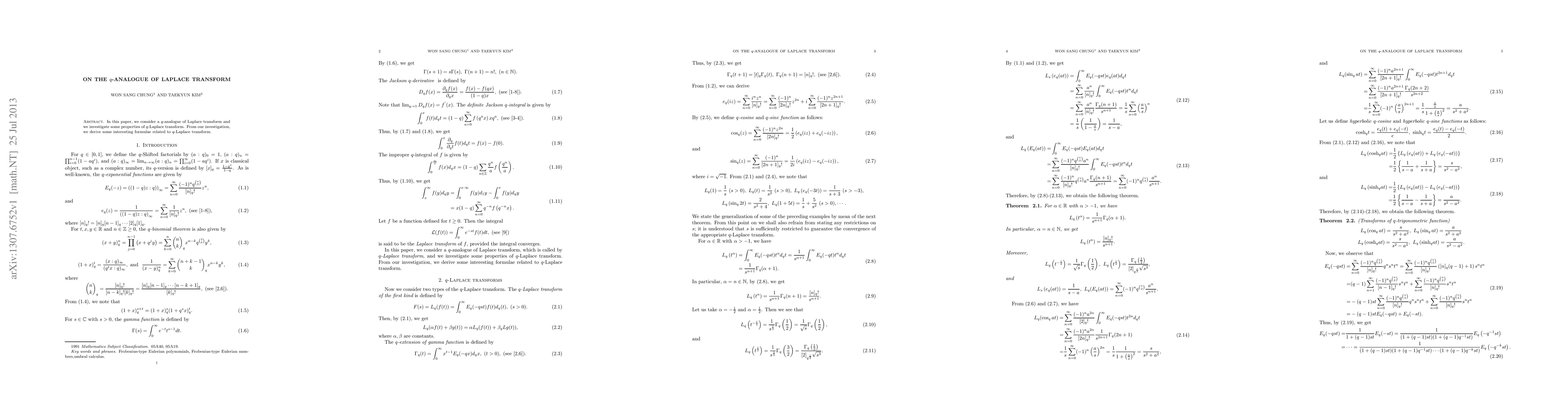 This paper explores the q-analogue of the Laplace transform, investigating its properties and deriving novel formulae related to the q-Laplace transform. The findings provide new insights into this mathematical transformation.