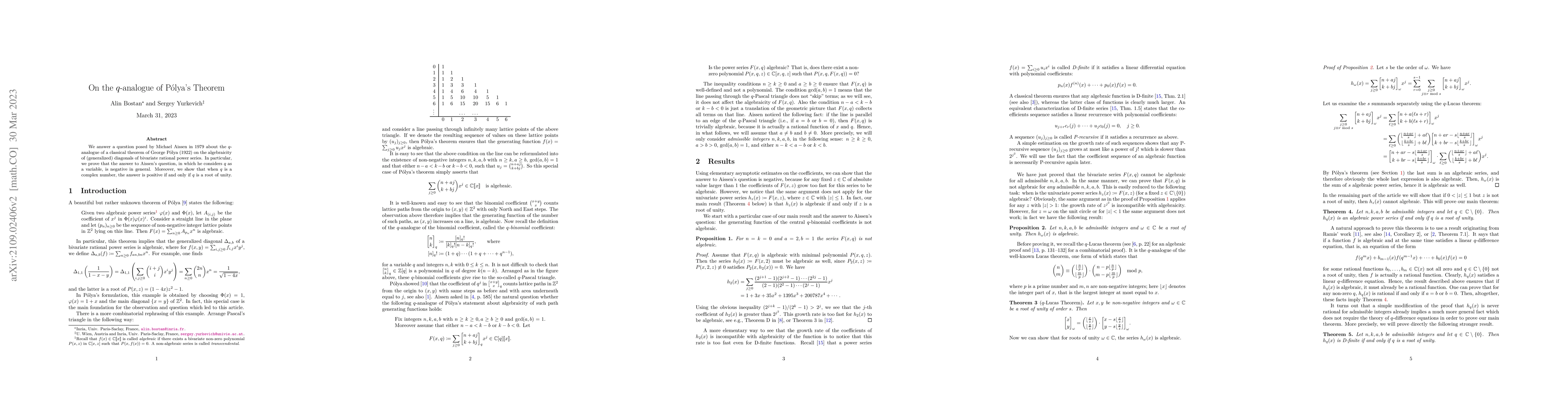 This paper addresses Michael Aissen's 1979 question regarding the $q$-analogue of Pólya's theorem on the algebraicity of generalized diagonals of bivariate rational power series, concluding that the $q$-analogue is generally not algebraic, except when $q$ is a root of unity.