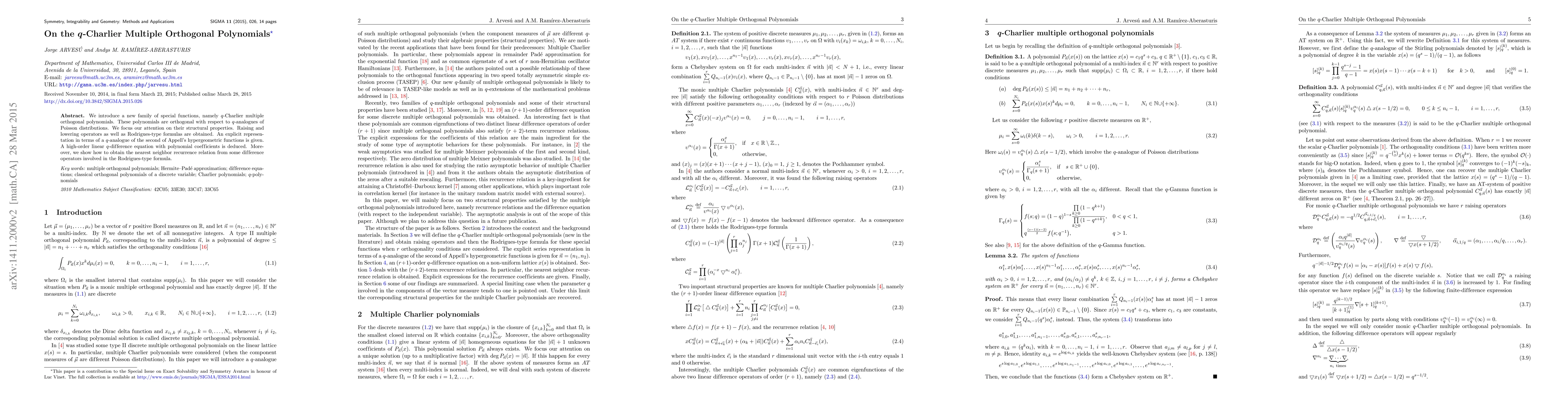 We introduce a new family of special functions, namely $q$-Charlier multiple orthogonal polynomials. These polynomials are orthogonal with respect to $q$-analogues of Poisson distributions. We focus our attention on their structural properties. Raising and lowering operators as well as Rodrigues-type formulas are obtained. An explicit representation in terms of a $q$-analogue of the second of Appell's hypergeometric functions is given. A high-order linear $q$-difference equation with polynomial coefficients is deduced. Moreover, we show how to obtain the nearest neighbor recurrence relation from some difference operators involved in the Rodrigues-type formula.